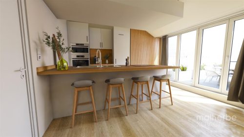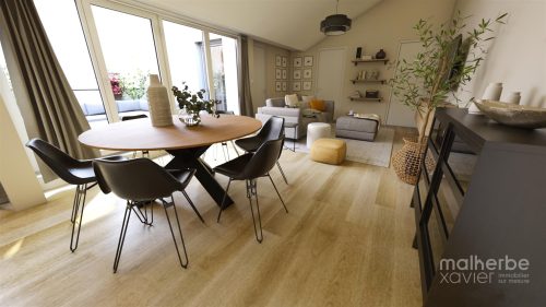 Superbe appartement de haut standing dans résidence neuve – ouvrage et équipements de qualité, matériaux nobles et durables (pierres naturelles, bardage bois, toiture en zinc) – Situation très agréable en bord de Warchenne et très appréciée à deux pas du centre dynamique de Malmedy, nombreux commerces, écoles et services, accès autoroute aisé; à proximité de nombreux attraits touristiques, culturels, sportifs et naturels dans une des plus belles régions du pays