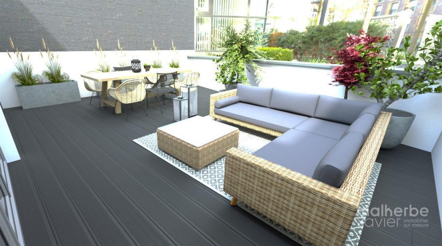 Extérieur : superbe terrasse de 32 m² orientée Sud-Ouest