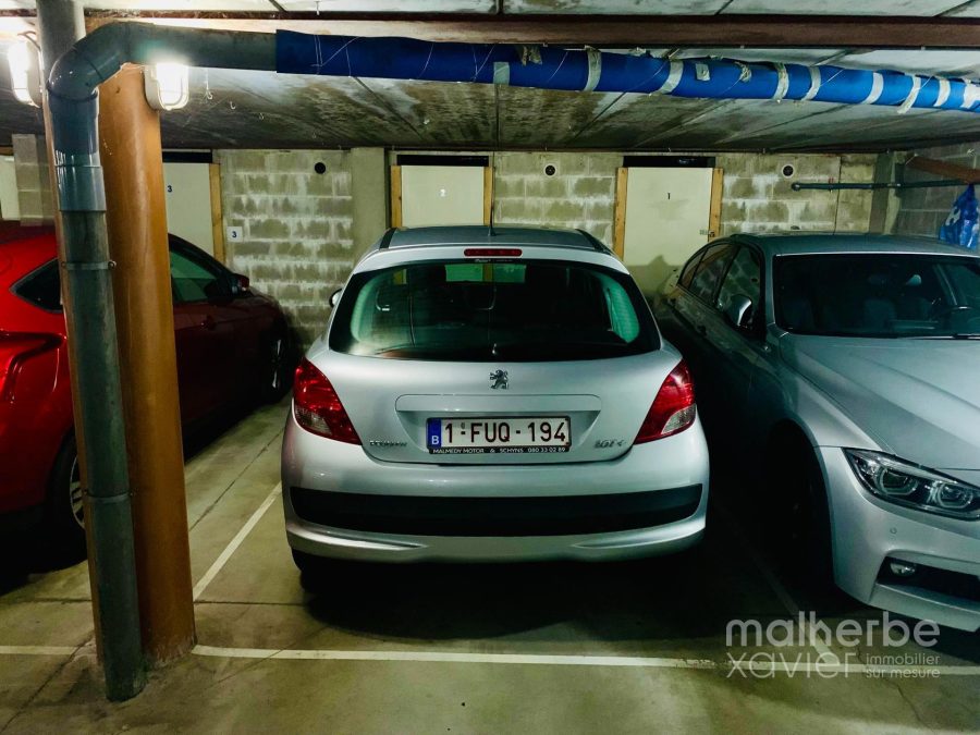 3e étage : palier, appartement : hall d’entrée, living très lumineux donnant accès à la terrasse ouvert sur la cuisine équipée; hall de nuit, deux chambres à coucher, salle de bains équipée, wc indépendant, débarras