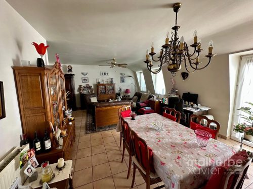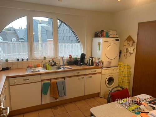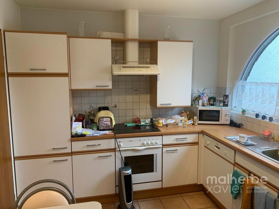 – Cuisine équipée : nombreux meubles sur mesure, taque vitrocéramique 4 zones, hotte, four, frigo, évier, lave-vaisselle + raccord machine à laver