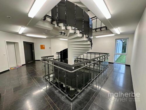 Rez-de-chaussée : sas d’entrée sécurisé, vaste hall d’entrée avec un escalier majestueux, accès ascenseur