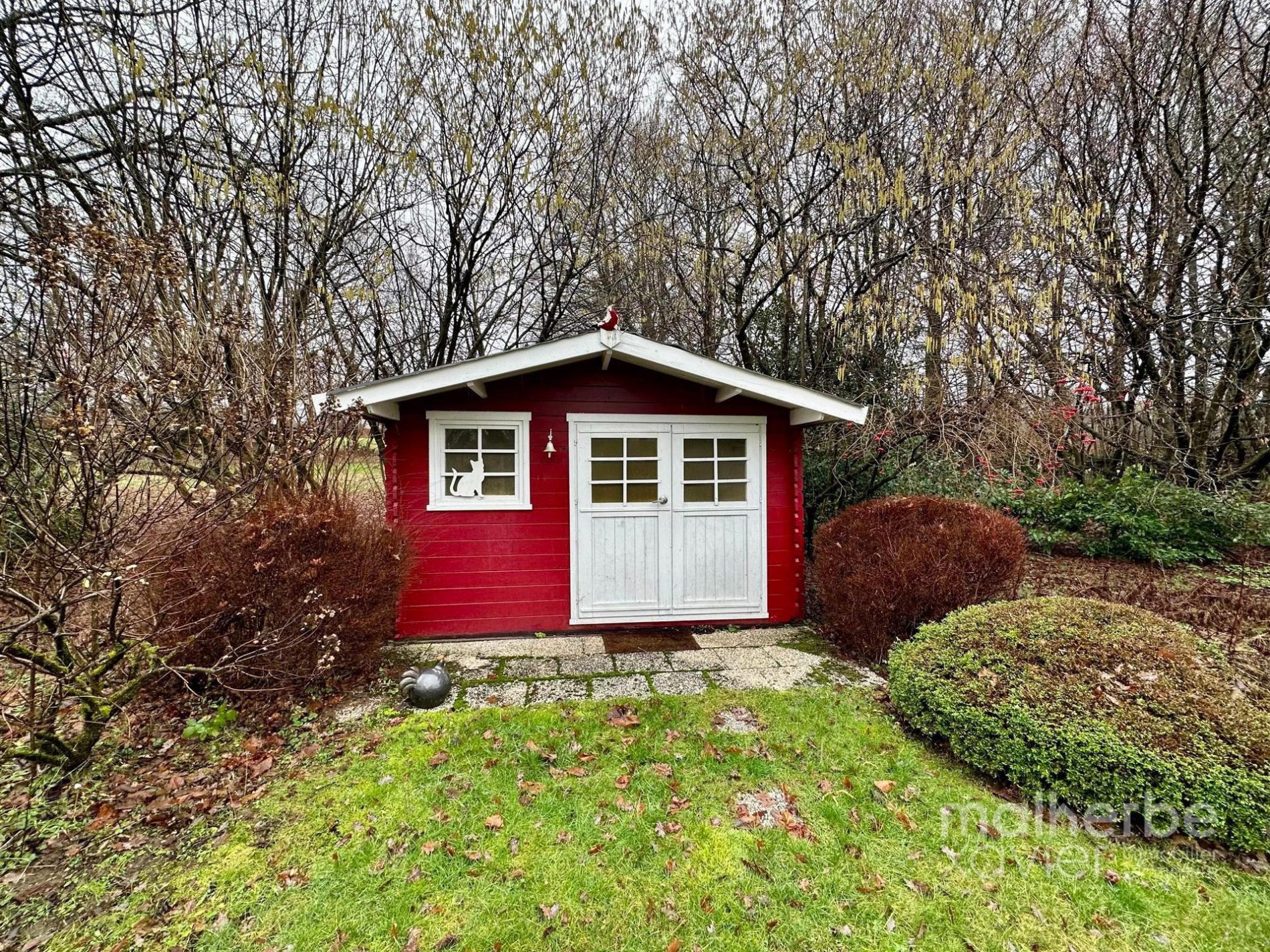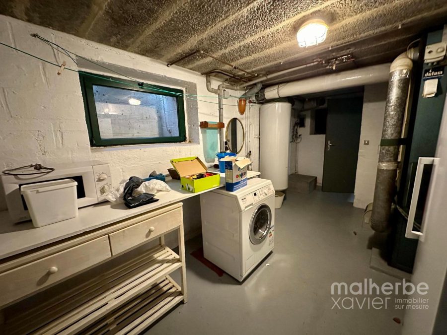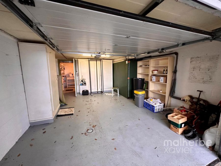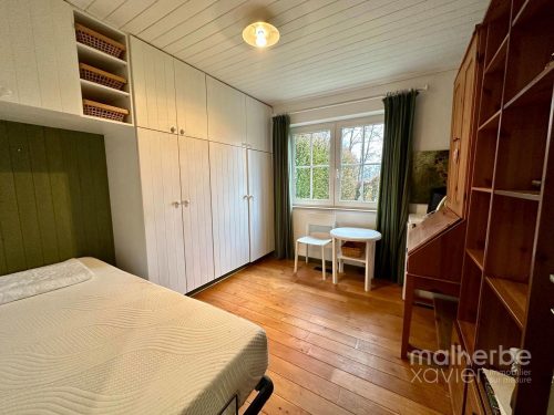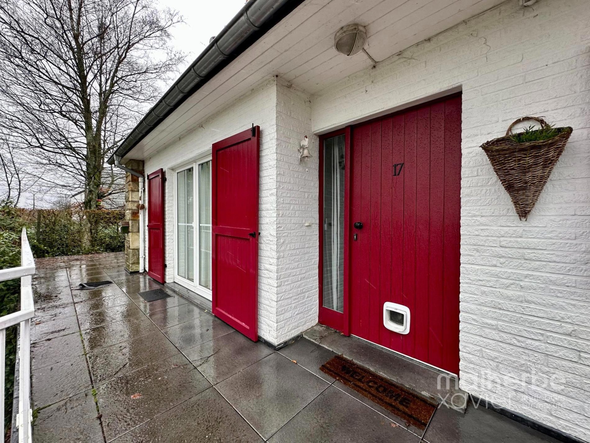 Rez-de-chaussée: hall d’entrée avec wc indépendant, living ouvert sur la cuisine équipée donnant accès à la terrasse et au jardin, 2 chambres à coucher, salle de bains