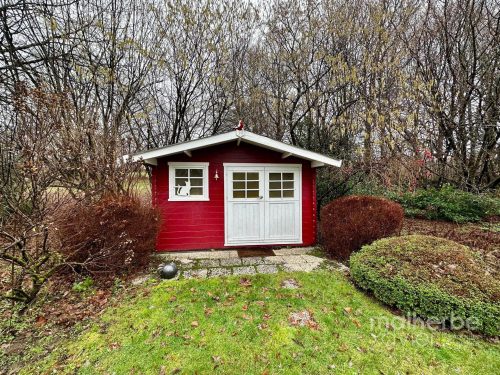 Extérieur: 2 emplacements de parking, terrasse, jardin aménagé avec étang