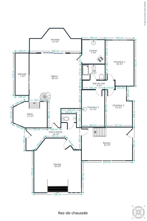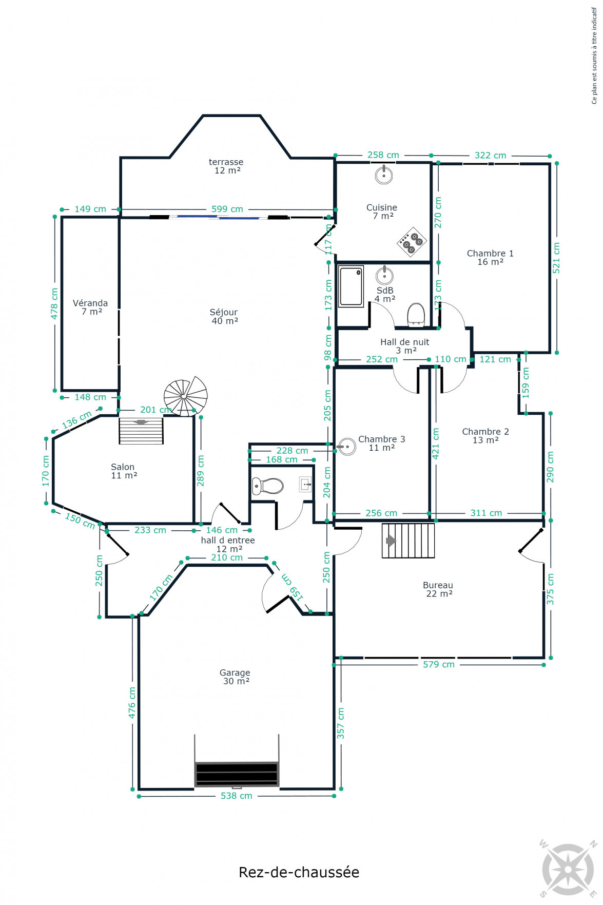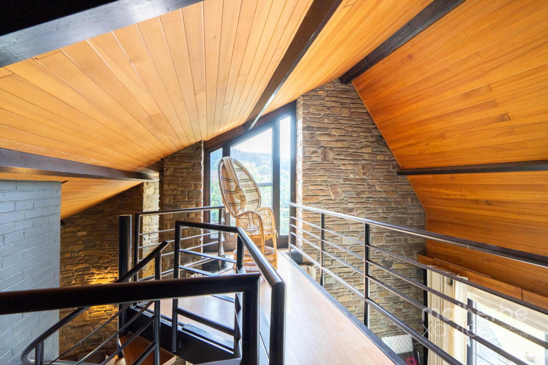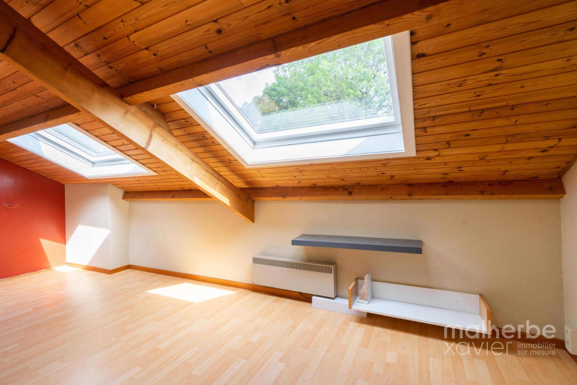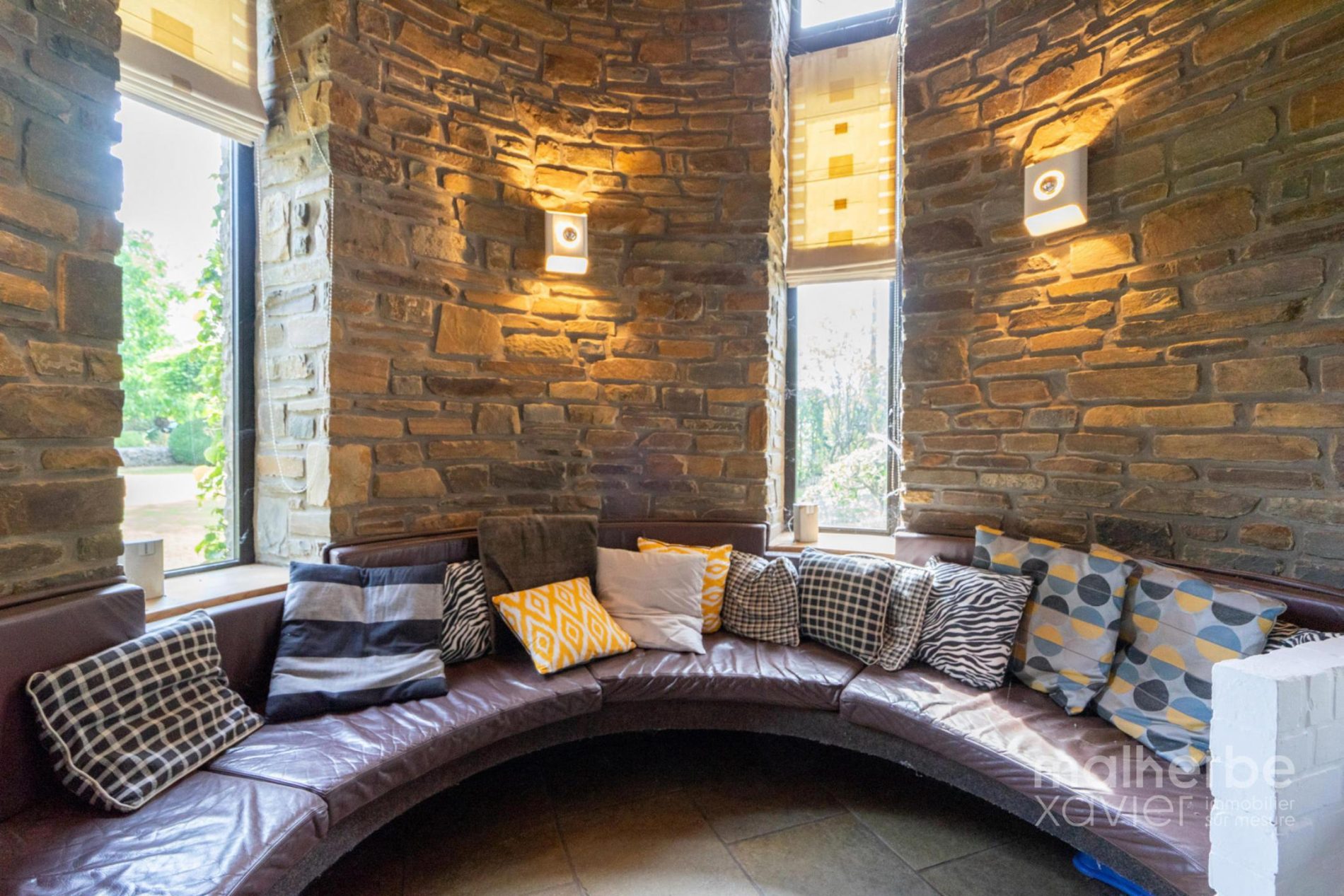 Rez-de-chaussée : hall d’entrée desservant le living, le bureau et le garage; vaste living lumineux donnant accès à la terrasse avec espace salon (cassette à bois encastrée) , véranda donnant accès au jardin, cuisine équipée, hall de nuit desservant trois belles chambres à coucher, salle de bains équipée