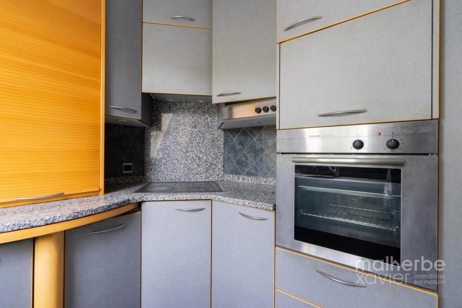 – Cuisine équipée: nombreux meuble (töller), une taque vitro 4 zones, four, hotte, évier, frigo avec congélateur, lave-vaisselle