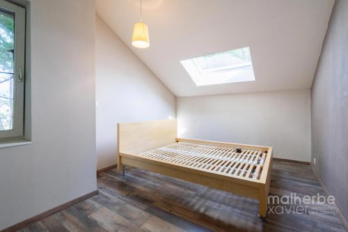 – L’ensemble du rez-de-chaussée est carrelé, la chambre de l’étage sur parquet flottant