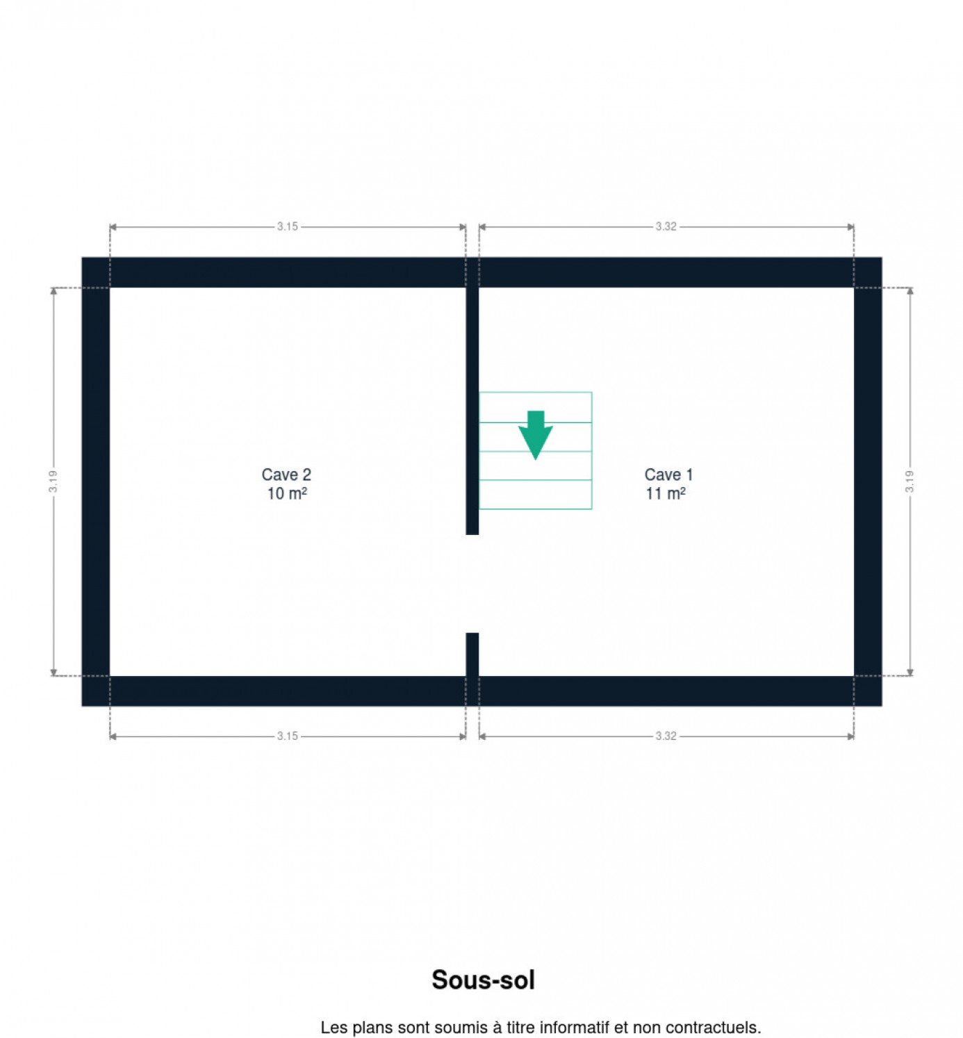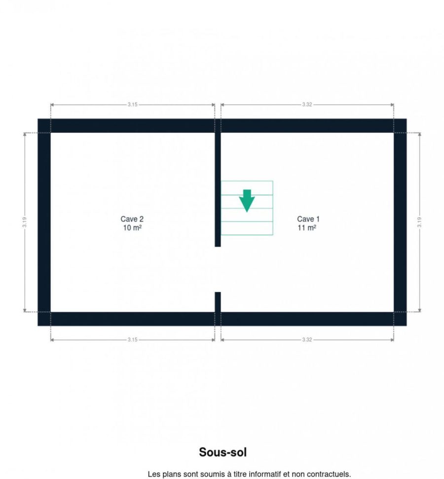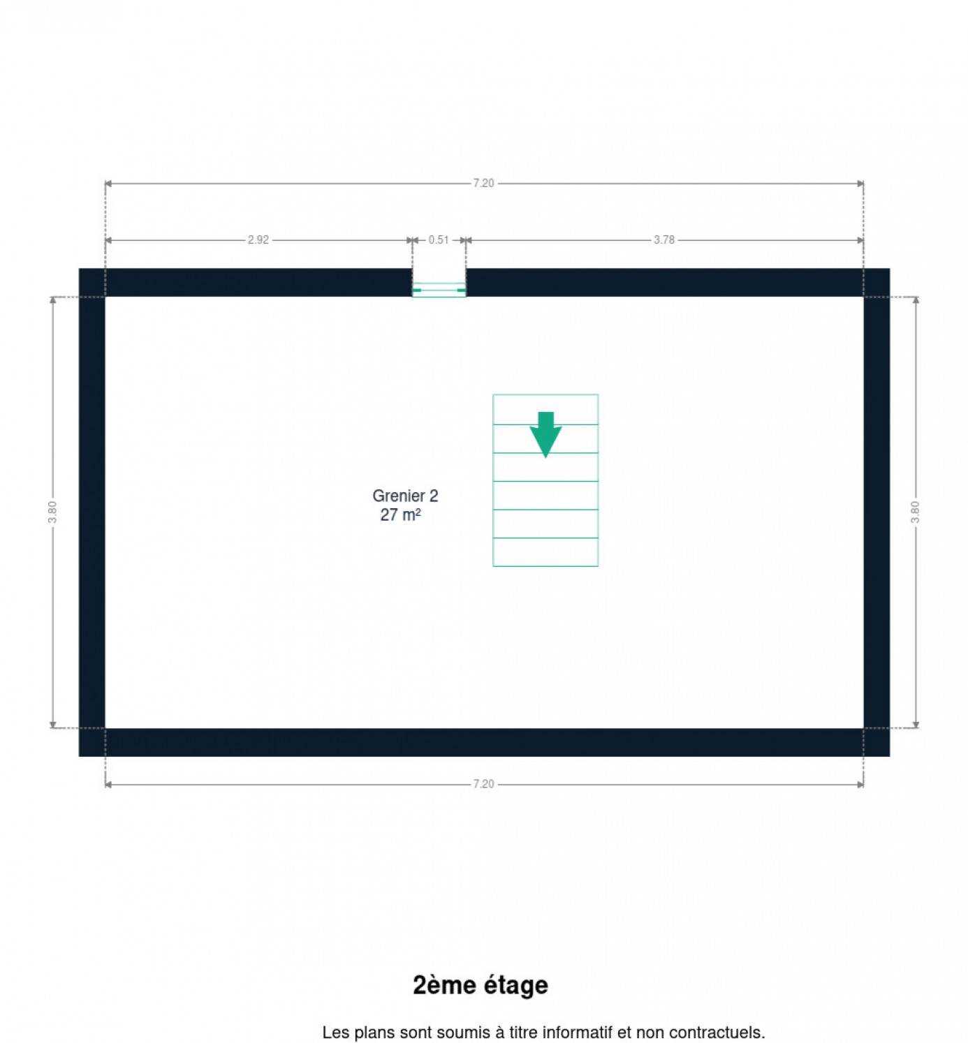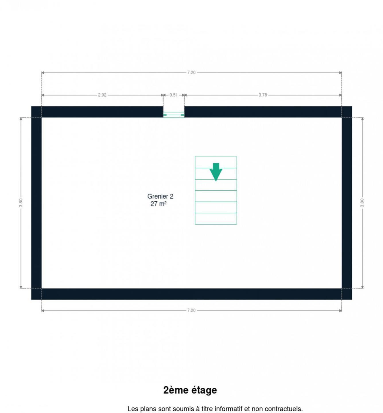 1er étage : vaste palier desservant deux chambres à coucher et une salle de bains, vaste grenier (34 m²) aménageable