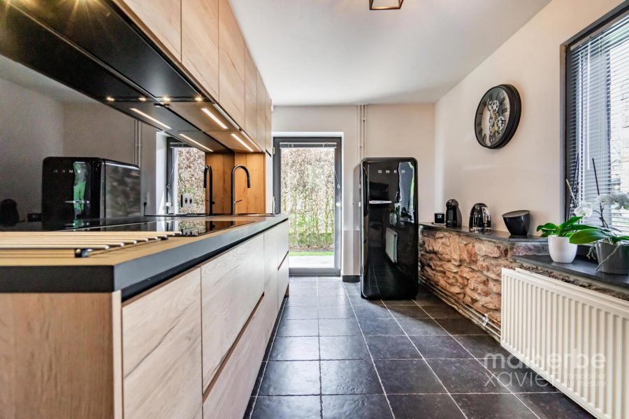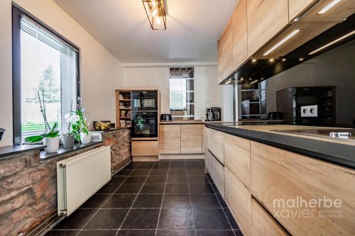 – Cuisine équipée neuve : nombreux meubles sur mesure, taque à induction 4 zones, hotte Novy, four, combi-four, frigo SMEG, évier, lave-vaisselle