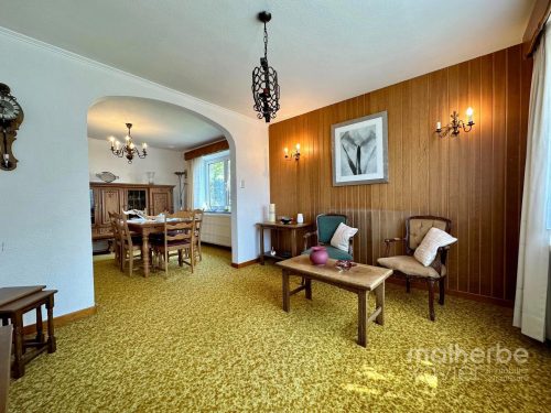 Rez-de-chaussée : hall d’entrée avec wc indépendant donnant accès à la terrasse et au jardin, cuisine équipée, salle à manger, grand salon très lumineux