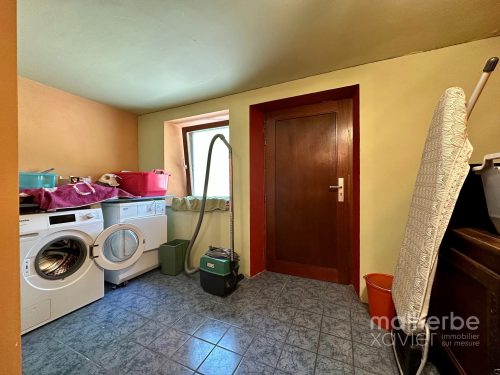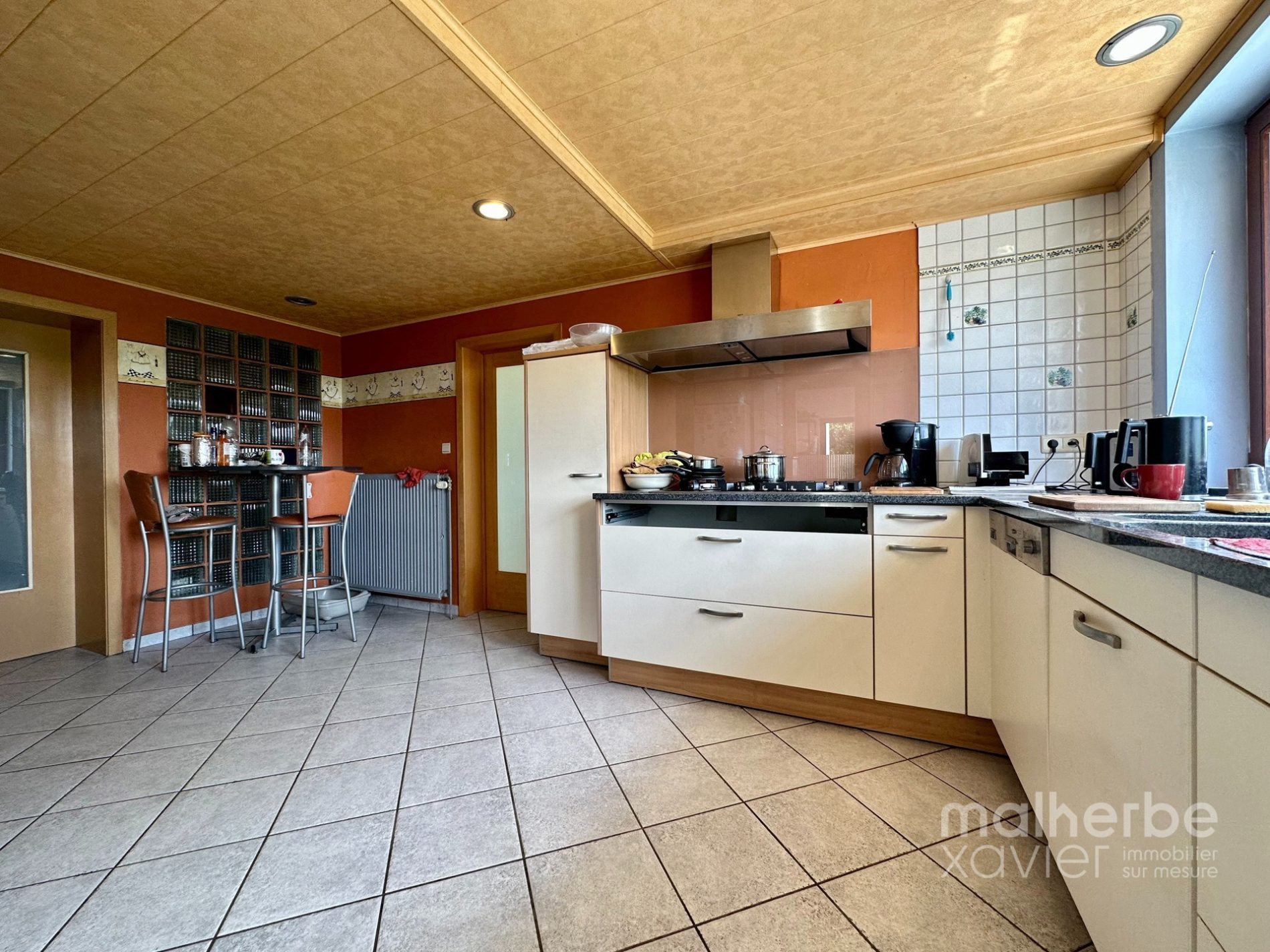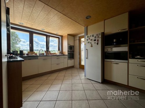 – Cuisine équipée : nombreux meubles sur mesure, taque au gaz 4 becs, 2 fours, micro-onde encastré, hotte, frigo, évier