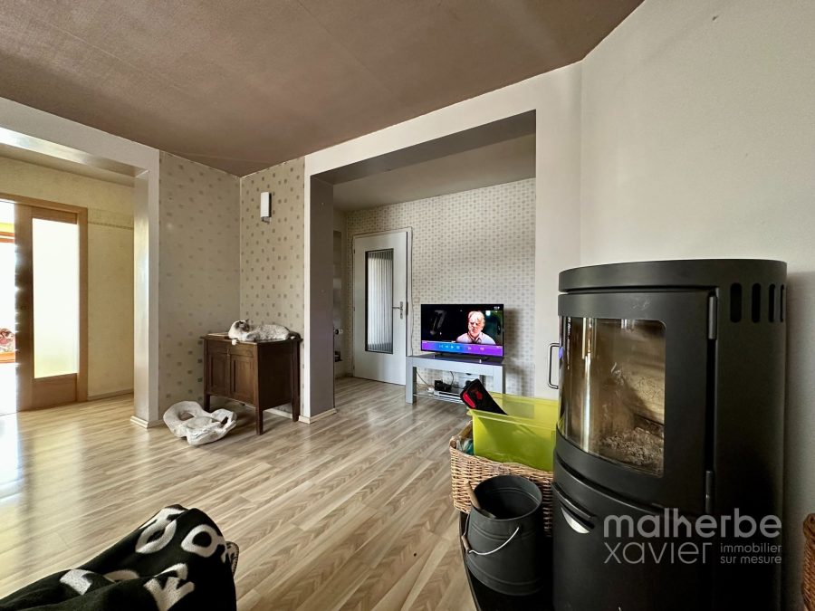 Rez-de-chaussée : hall d’entrée, très beau salon avec poêle à bois, salle à manger, cuisine équipée avec espace repas, arrière cuisine, salle de bains équipée PMR, deux WC dont un équipé PMR, buanderie donnant accès à l’extérieur (seconde entrée)