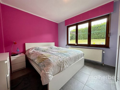 Rez-de-chaussée : hall d’entrée avec wc indépendant, belle cuisine équipée avec espace repas ouverte sur un grand salon très lumineux, buanderie donnant accès à la terrasse et au jardin; salle de bains, deux chambres à coucher