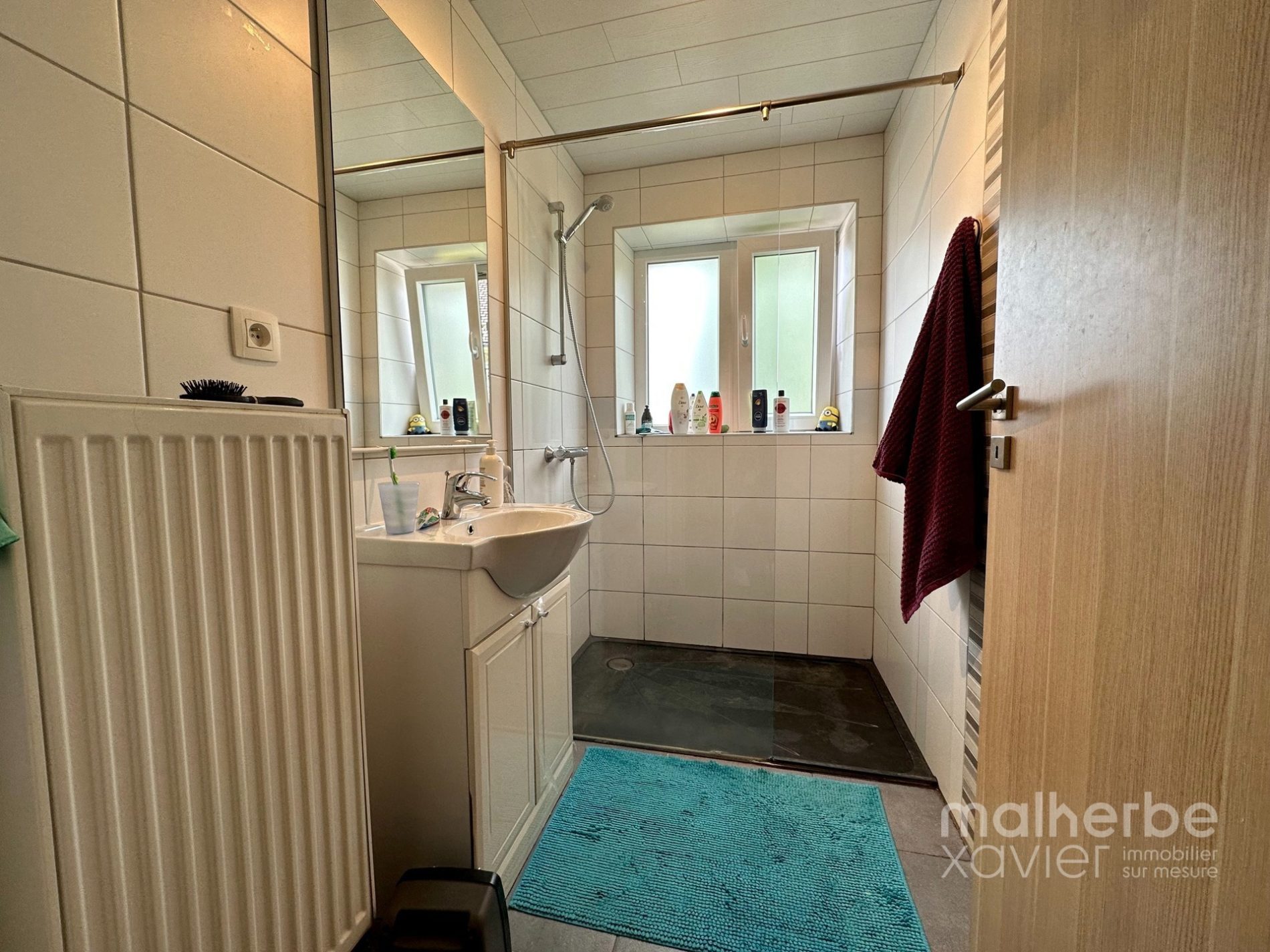 – Salle de bains équipée carrelée sol et mur : douche à « l’italienne », lavabo avec miroir