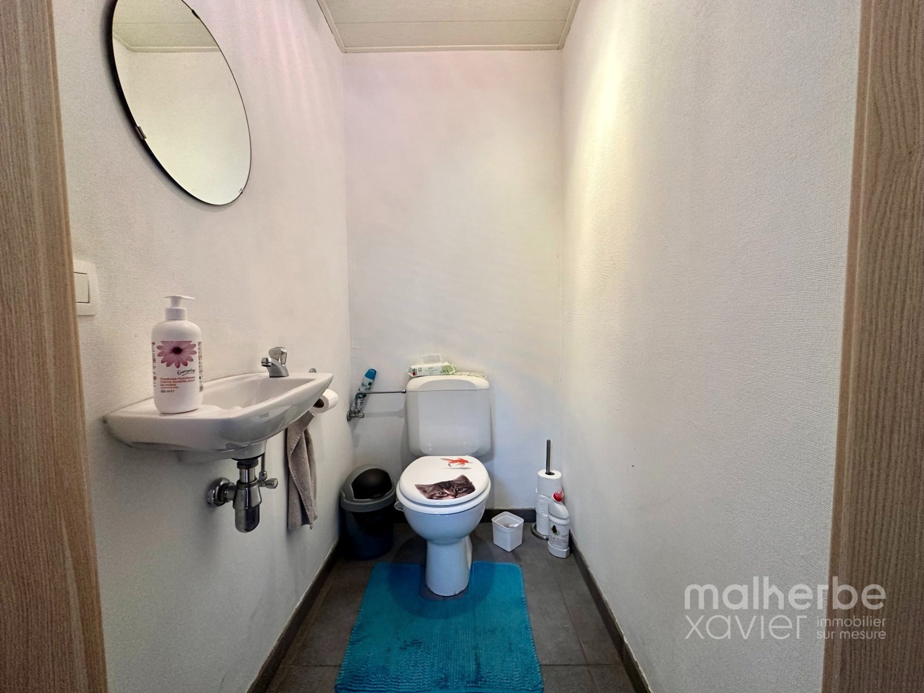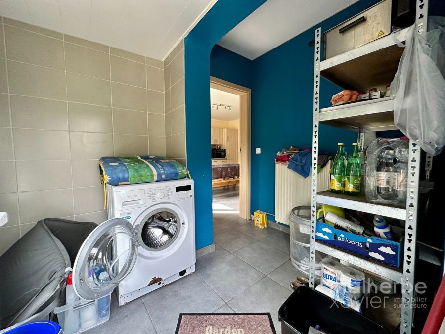 Rez-de-chaussée : hall d’entrée avec wc indépendant, belle cuisine équipée avec espace repas ouverte sur un grand salon très lumineux, buanderie donnant accès à la terrasse et au jardin; salle de bains, deux chambres à coucher