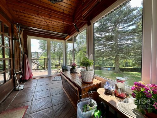 – Extérieur : superbe terrasse, jardin avec une superbe vue, abris de jardin