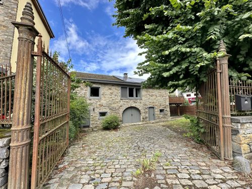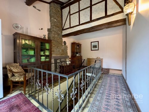 – entrée indépendante vers la fermette (bel-étage), vaste hall d’entrée avec un superbe escalier central, wc indépendant, garage, chaufferie-buanderie