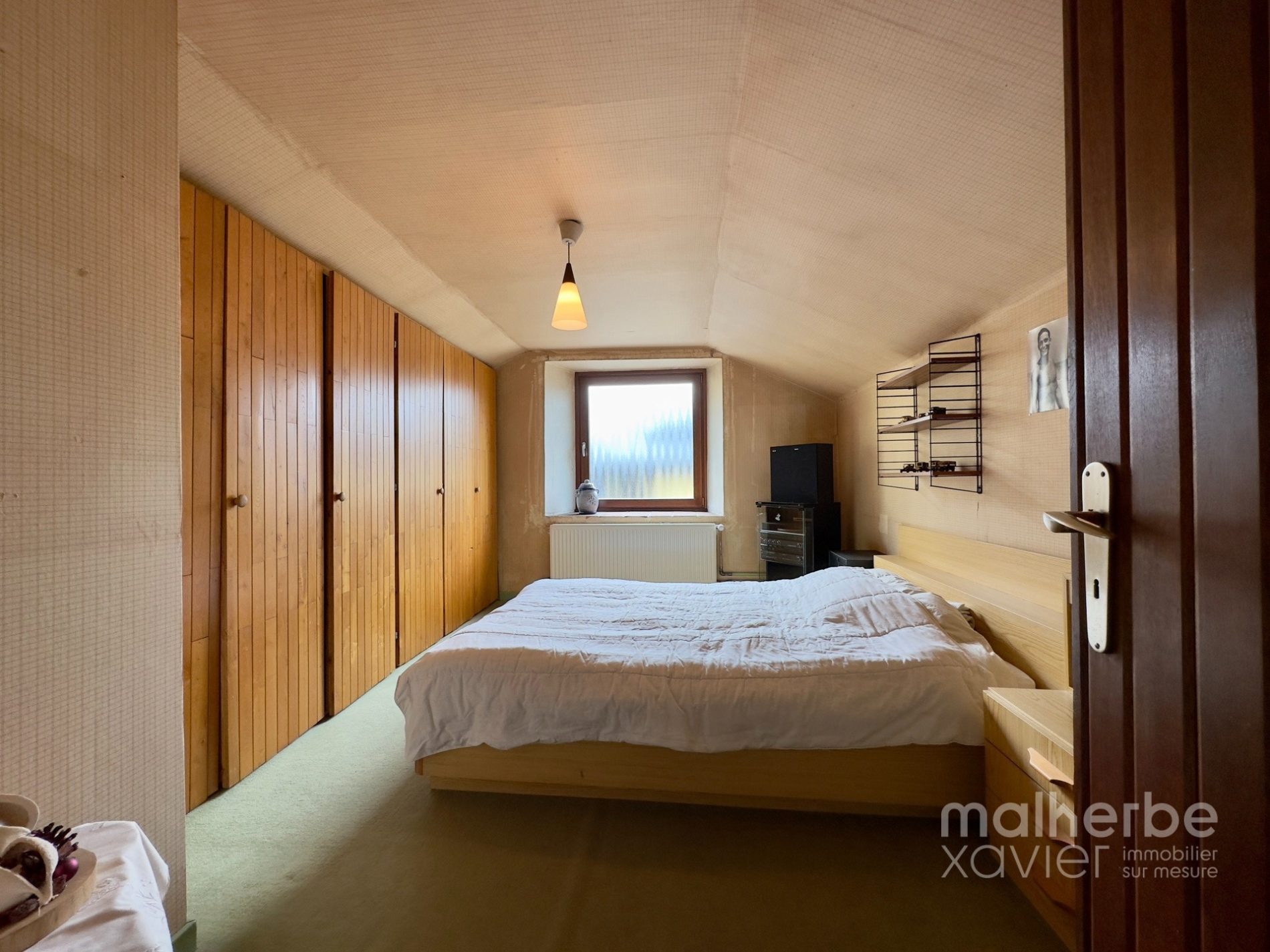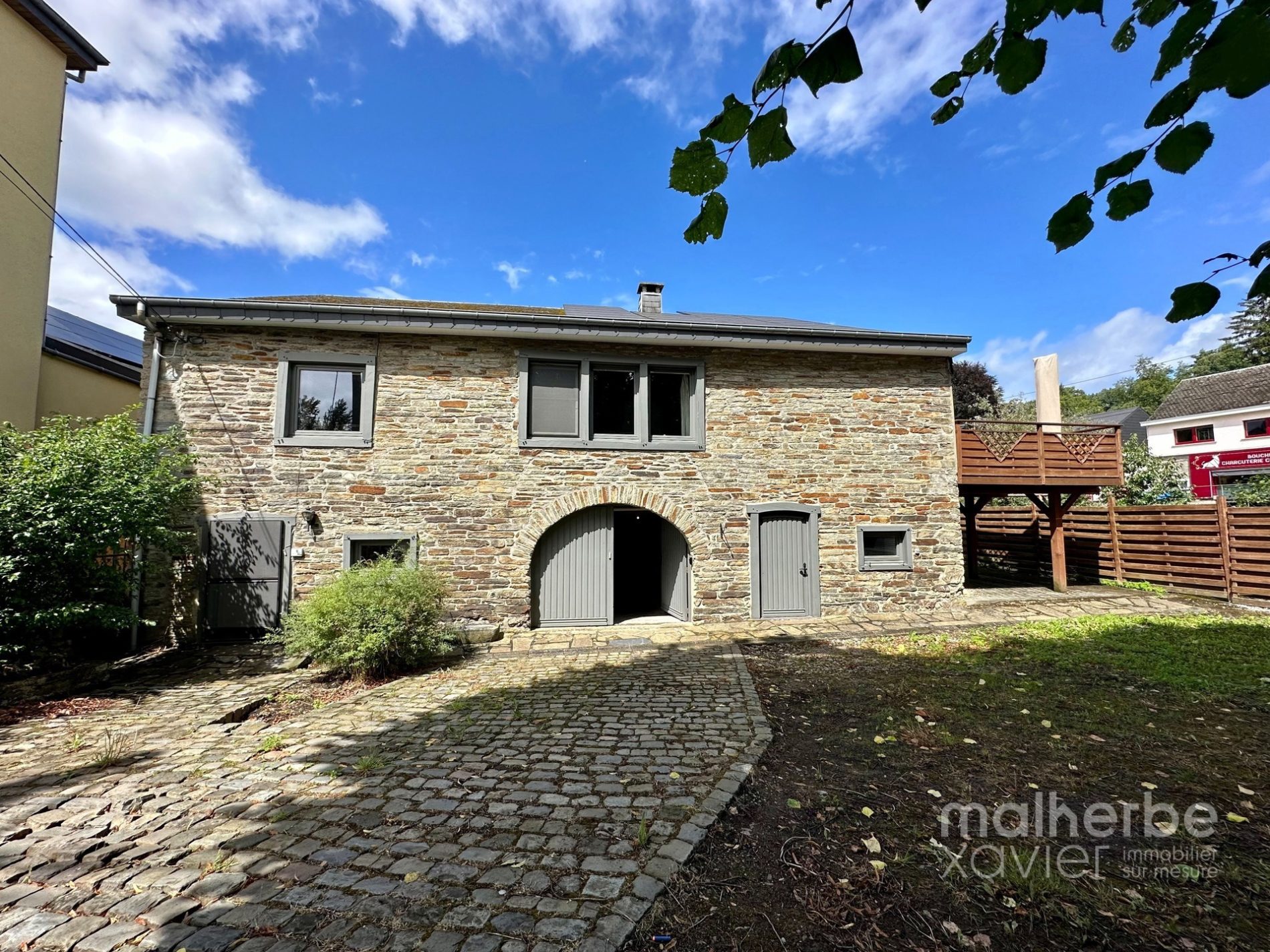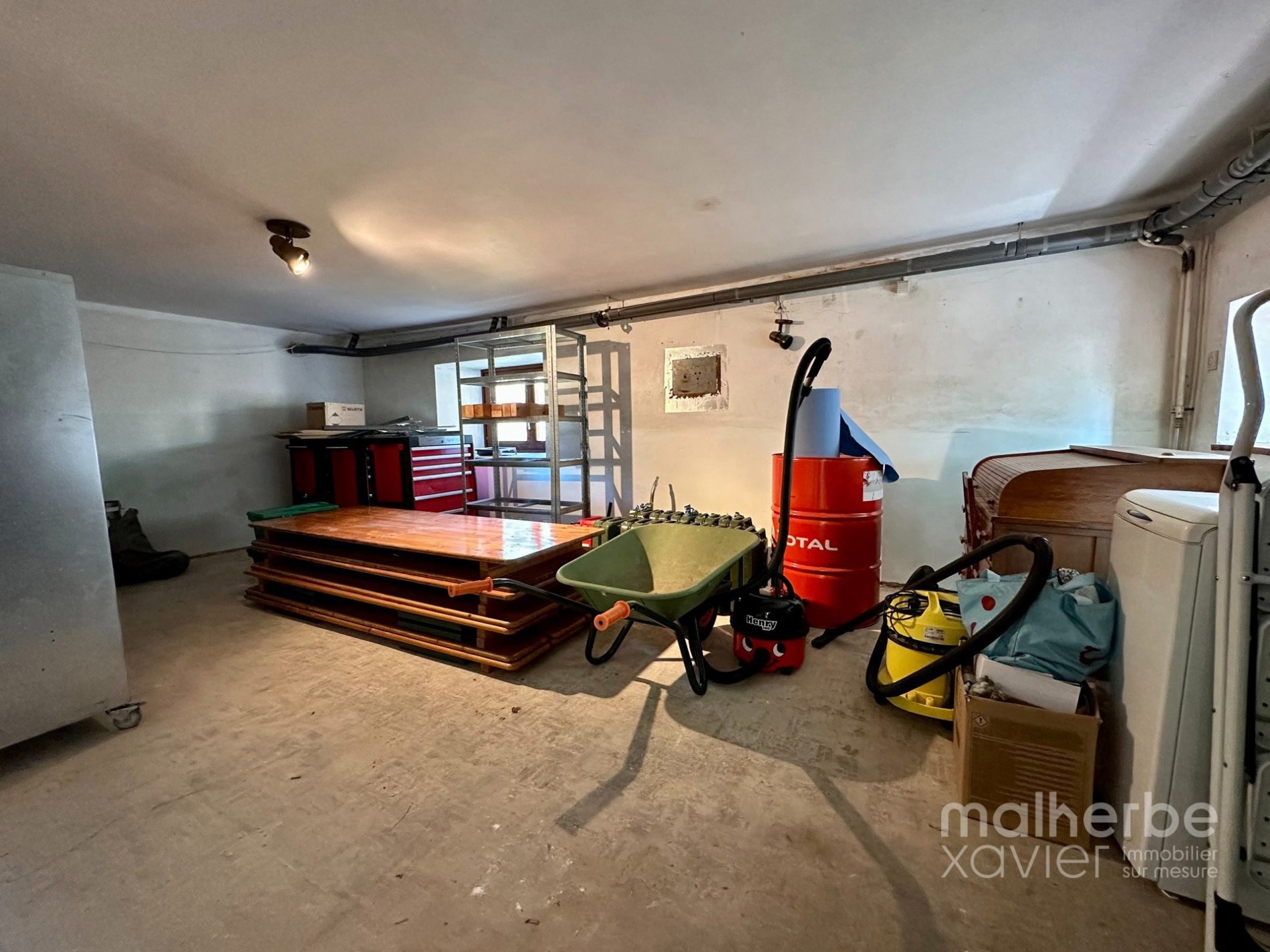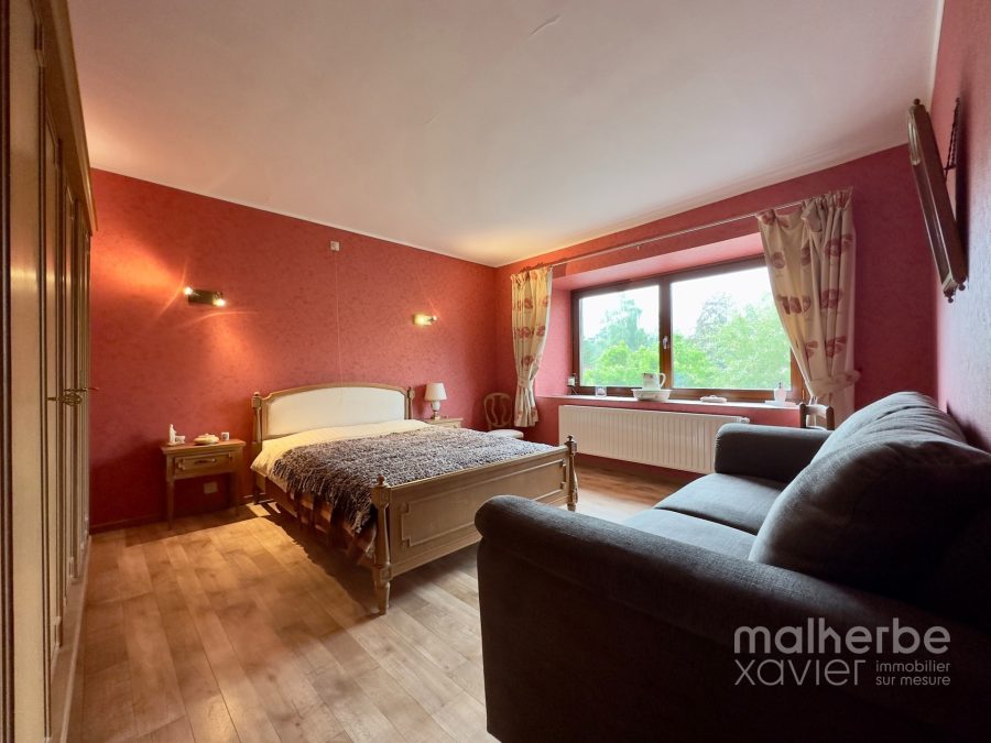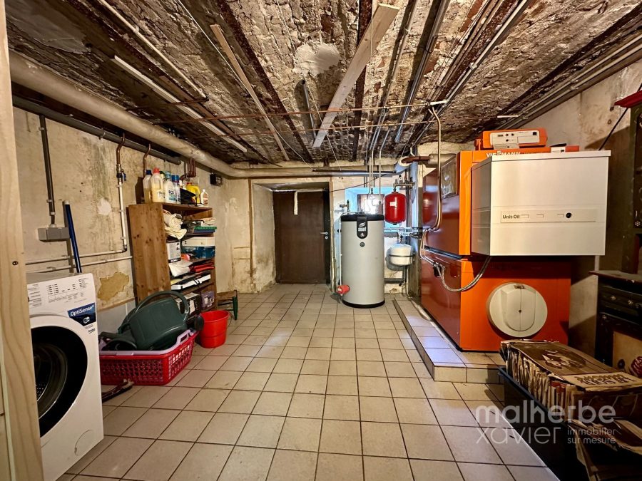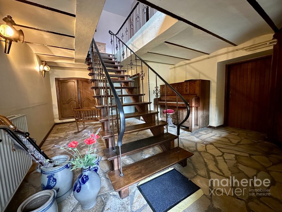 – entrée indépendante vers la fermette (bel-étage), vaste hall d’entrée avec un superbe escalier central, wc indépendant, garage, chaufferie-buanderie