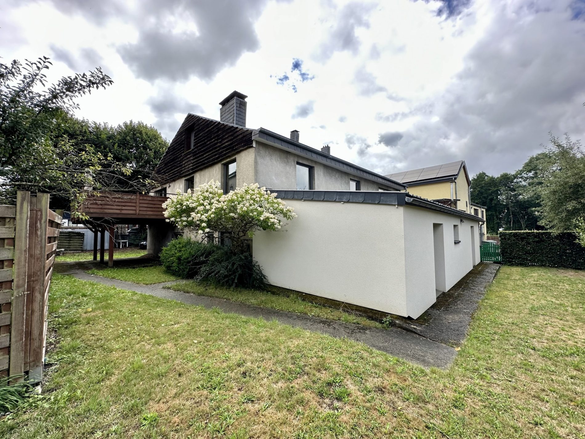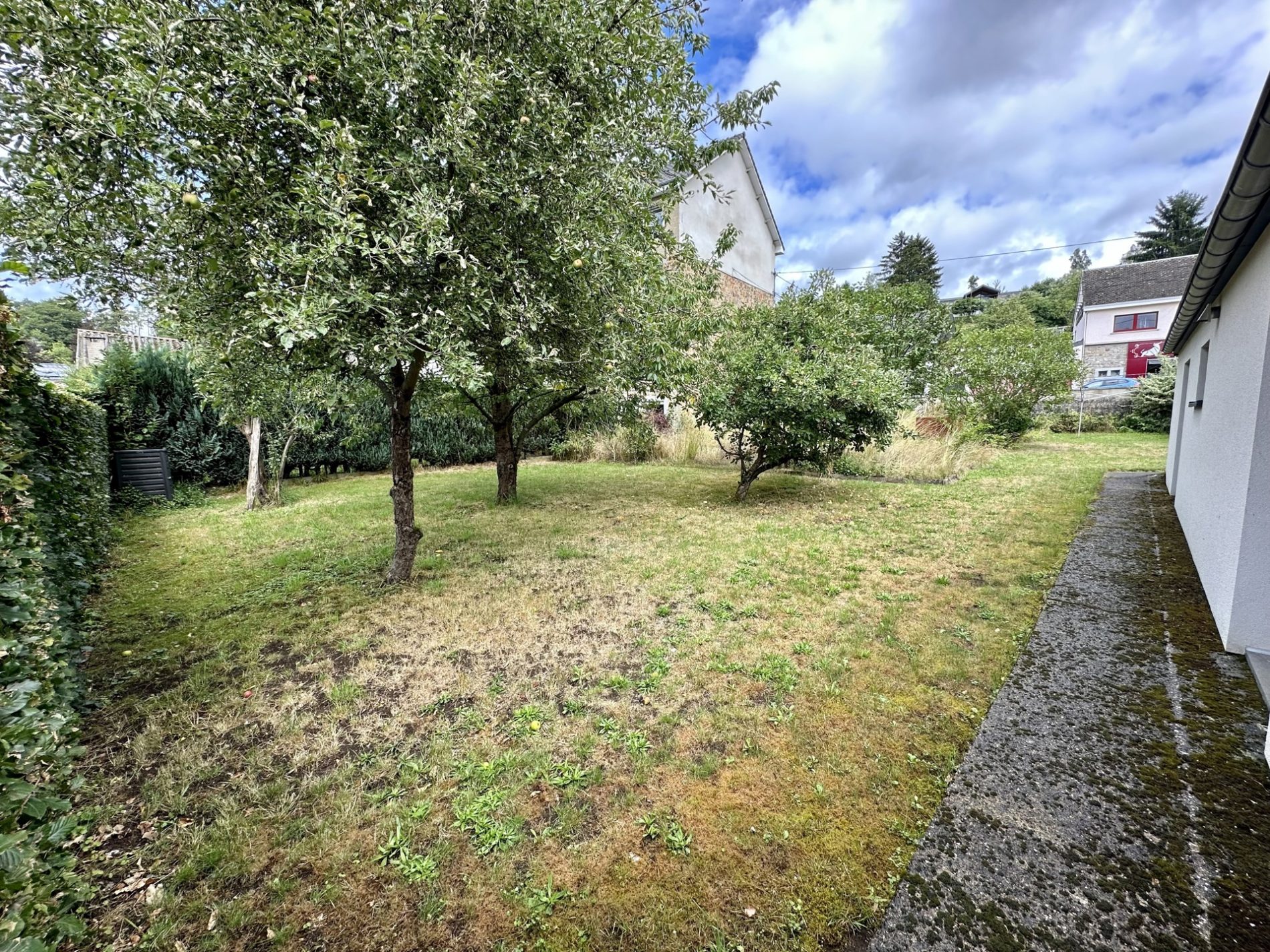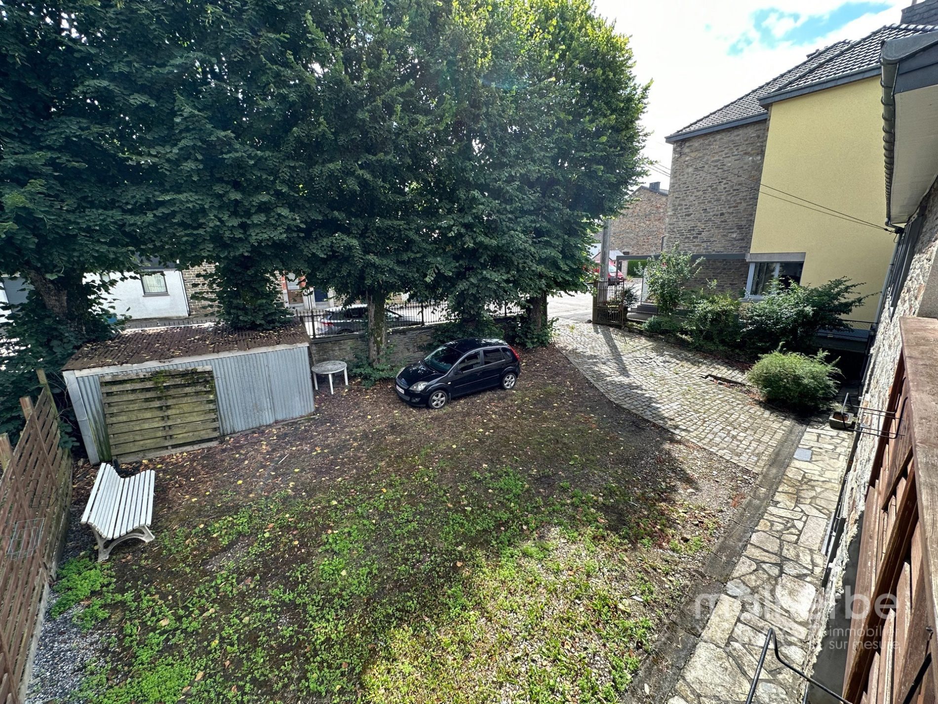 – entrée indépendante (arrière) vers l’appartement à rénover (innondé en juillet 2021, il a été nettoyé, seché et assaini) cuisine avec espace repas, salon, salle de bains et une chambre à coucher