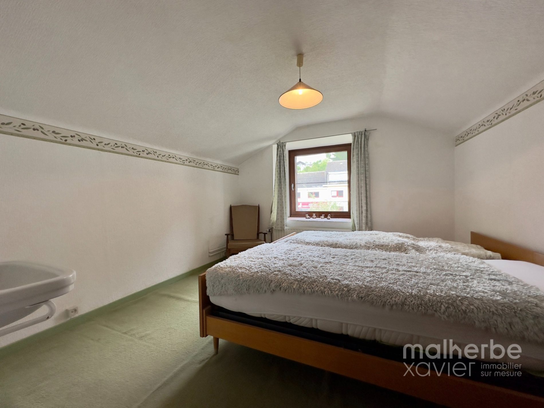 2e étage : hall de nuit desservant deux chambres à coucher équipé de lavabo et une salle de douche + wc