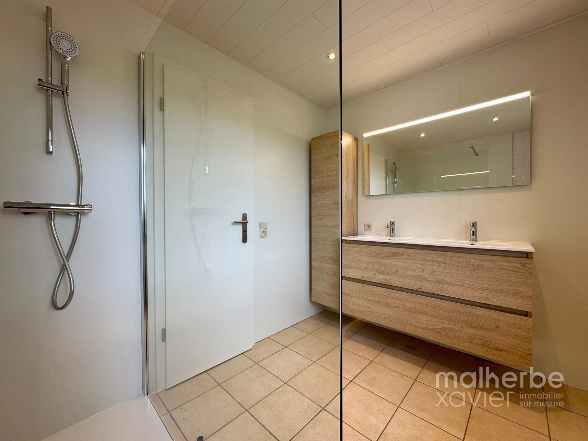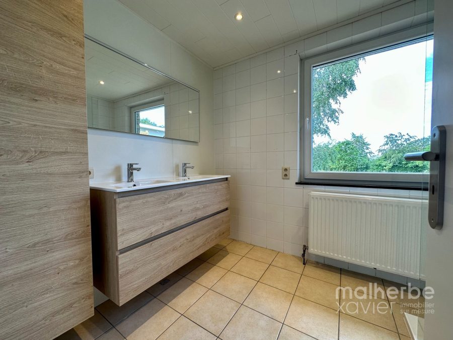 – Salle de bains équipée carrelée sol et mur (rénovée en 2023): douche à « l’italienne », double éviers avec miroir éclairé