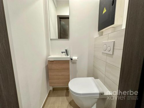– Salle de bains équipée: douche « à l’italienne », meuble double évier avec grand miroir éclairé