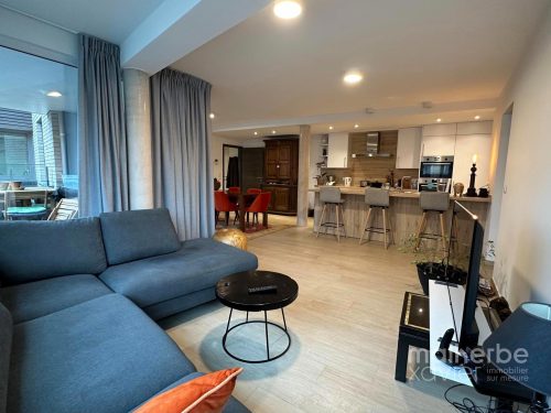 Superbe appartement de haut standing dans résidence neuve – ouvrage et équipements de qualité, matériaux nobles et durables (pierres naturelles, bardage bois, toiture en zinc) – Situation très agréable en bord de Warchenne et très appréciée à deux pas du centre dynamique de Malmedy, nombreux commerces, écoles et services, accès autoroute aisé; à proximité de nombreux attraits touristiques, culturels, sportifs et naturels dans une des plus belles régions du pays