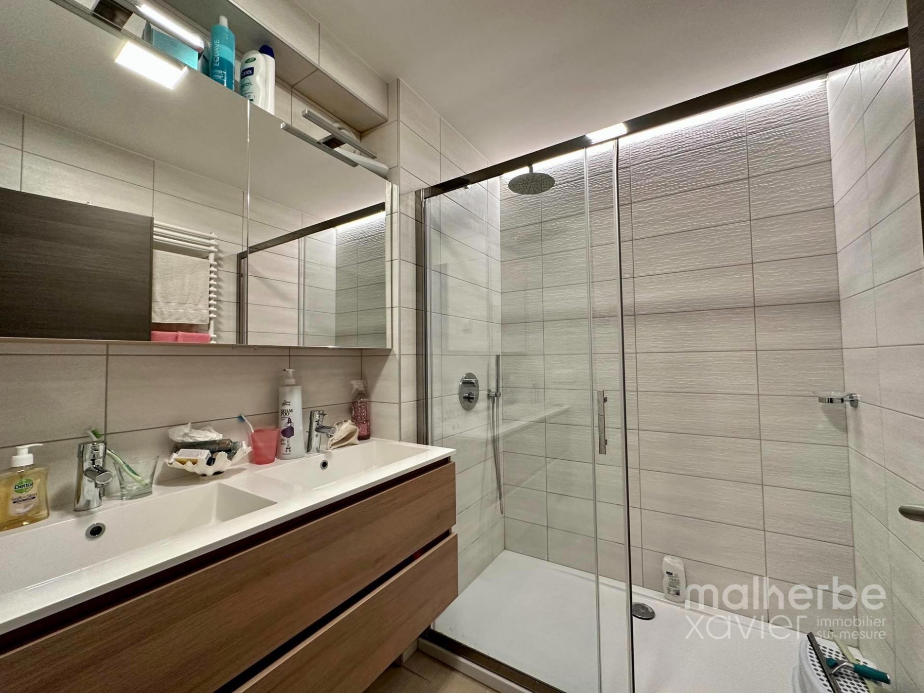 – Salle de bains équipée: douche « à l’italienne », meuble double évier avec grand miroir éclairé