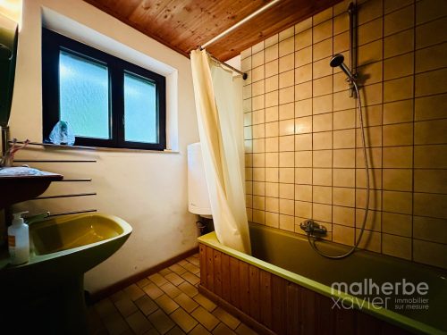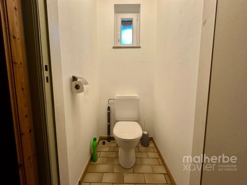 – Rez-de-chaussée : hall d’entrée, living très lumineux donnant accès à la terrasse et au jardin, cuisine équipée, chambre à coucher, salle de bains, wc indépendant