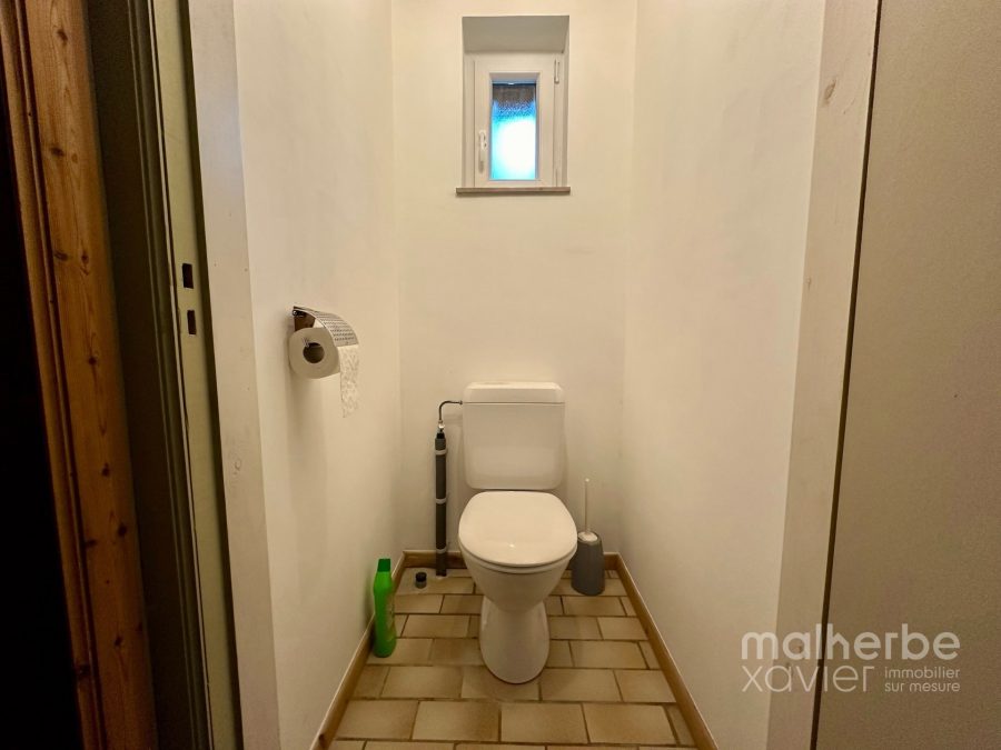 – Rez-de-chaussée : hall d’entrée, living très lumineux donnant accès à la terrasse et au jardin, cuisine équipée, chambre à coucher, salle de bains, wc indépendant