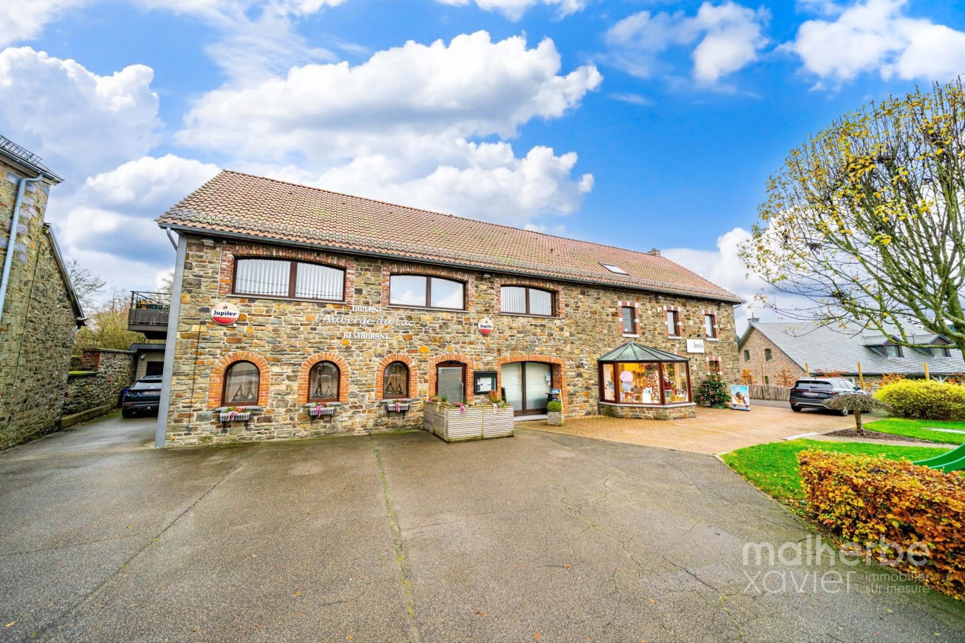 Très bel immeuble mixte de caractère de 1930 rénové avec soin au cours des dernières années composé de l’actuel restaurant « L’ Auberge du Lac » en exploitation jusque Juin 2024 (fin de carrière), le centre esthétique « Anaïs Esthétique » en pleine exploitation, Gîte meublé agréé pour 6 personnes et un appartement en duplex 4 chambres et 2 sdb – très belles possibilités d’exploitation –
