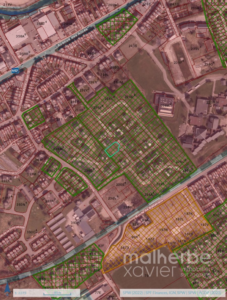 parcelle de 617 m² : ± 20m x ± 33m – très belle orientation –