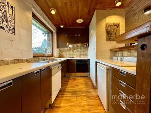 – Cuisine équipée : meubles sur mesure, taque vitro céramique 4 zones, hotte , four, lave-vaisselle