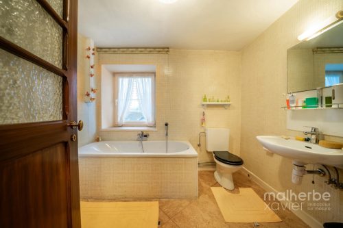 – Salle de bains 1er étage : bain, évier avec miroir, wc