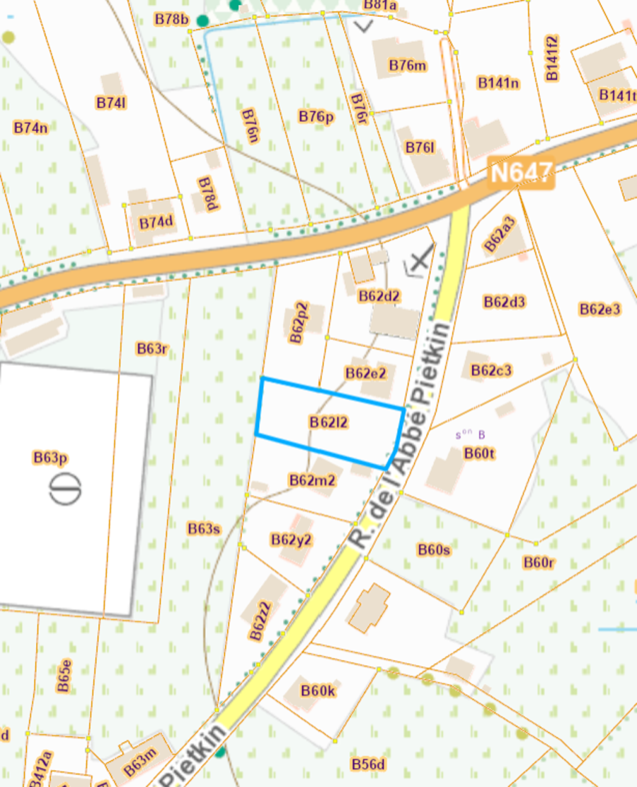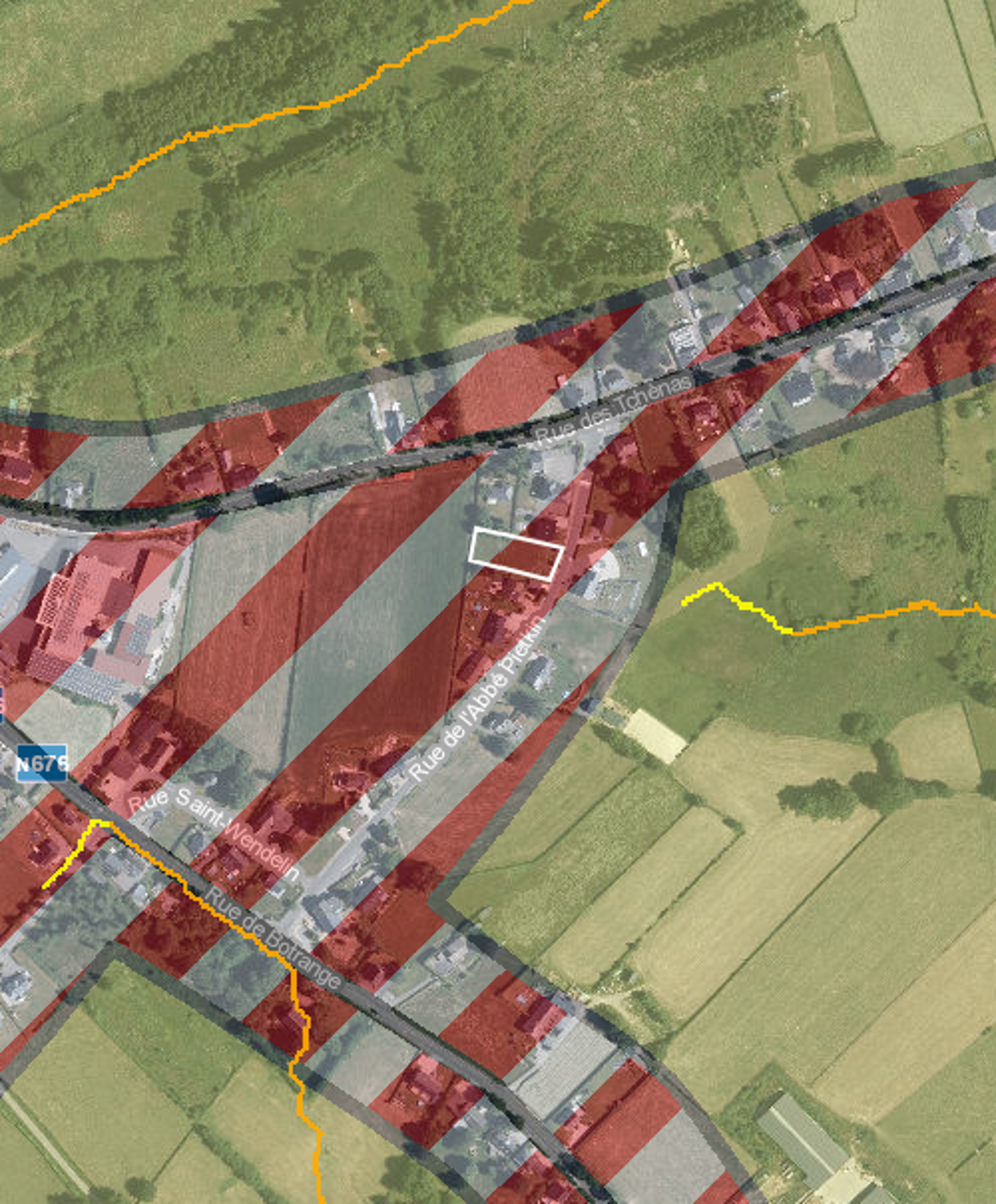 parcelle de 1316 m² : ± 25m x ± 58m – très belle orientation –