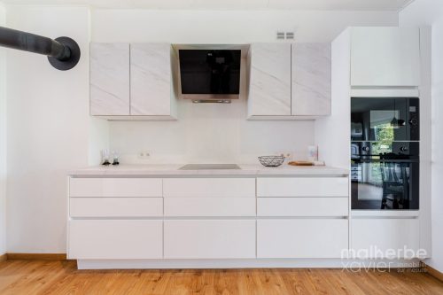 – Cuisine équipée: nombreux meubles sur mesure laqué blanc, vitrocéramique 4 zones, four, micro-onde, hotte, évier, lave-vaisselle et frigo