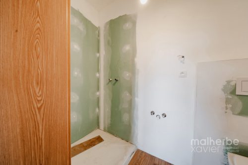 – Salles de bains 1er étage : en cours de finitions, douche, évier et wc