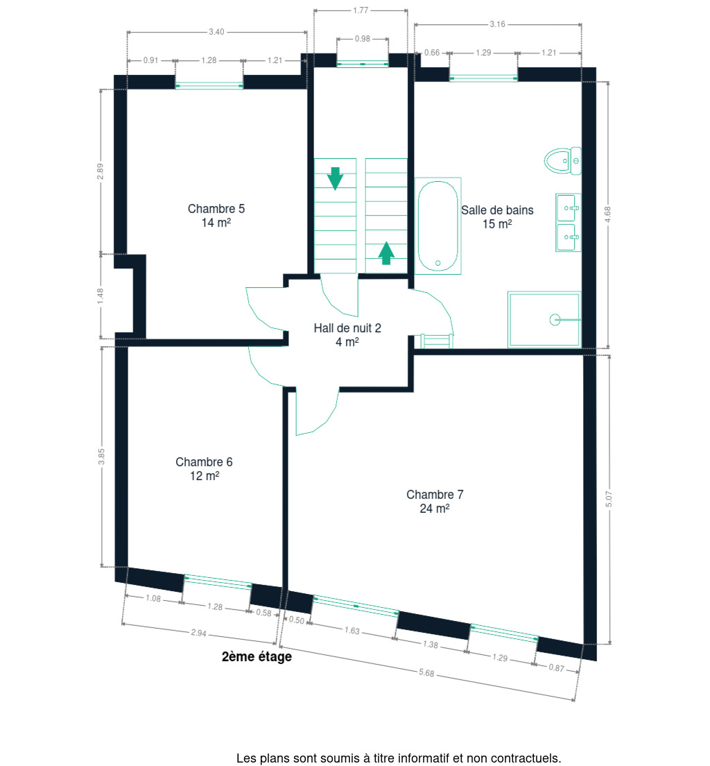 2e étage : hall de nuit desservant trois belles chambres à coucher et 1 salle de bains équipée