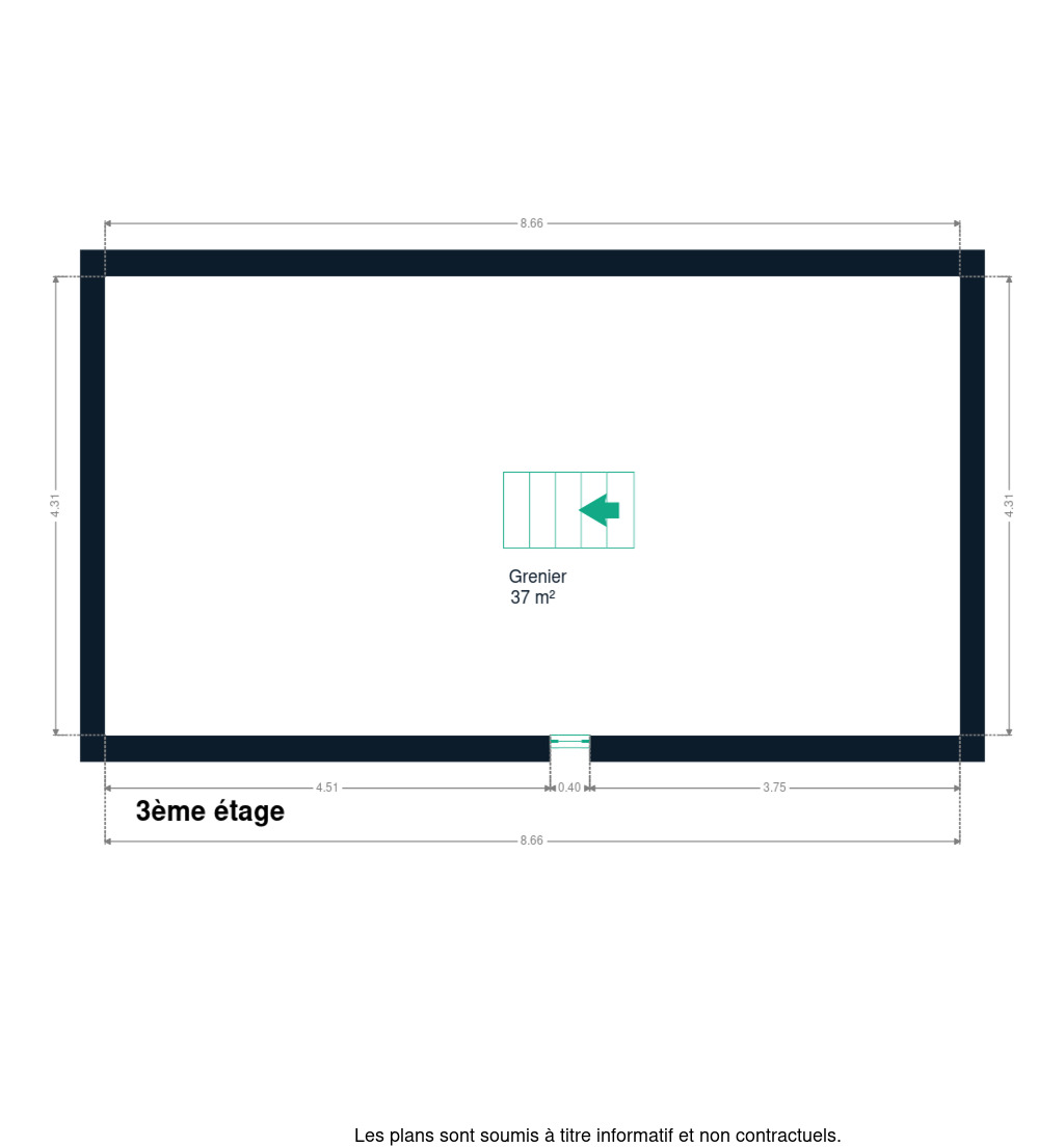 Combles : grenier non aménageable avec accès par escalier escamotable