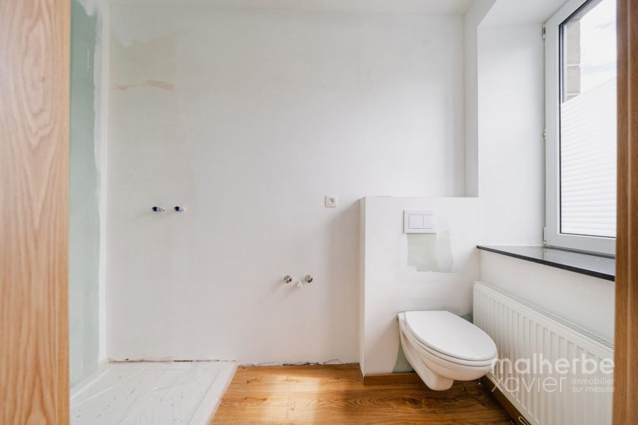 – Salles de bains 1er étage : en cours de finitions, douche, évier et wc