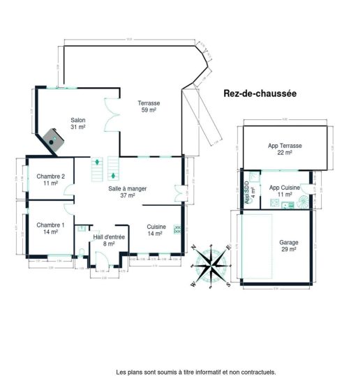 - Chauffage : Pompe à chaleur de dernière génération avec puits canadien, offrant un système de chauffage au sol et mural pour une répartition homogène de la chaleur.