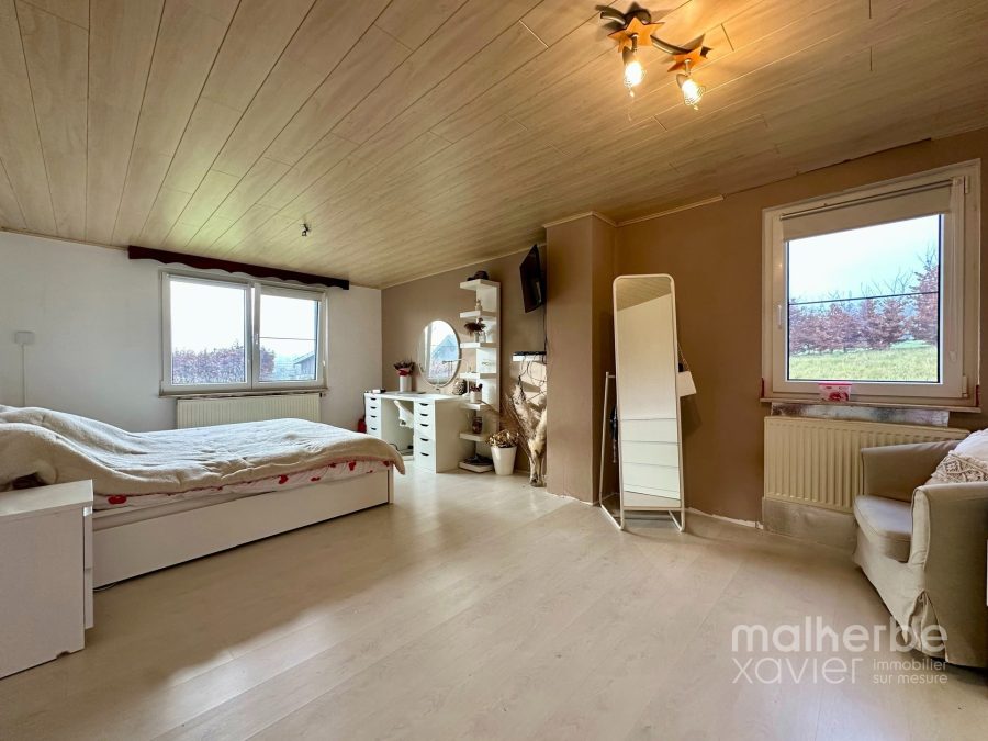 Découvrez ce magnifique bungalow de plain-pied situé dans le charmant village de Weywertz, offrant une vue imprenable sur les campagnes environnantes. Cette propriété unique s’étend sur une parcelle généreuse de 1 860 m², idéale pour les amoureux de nature et de tranquillité.