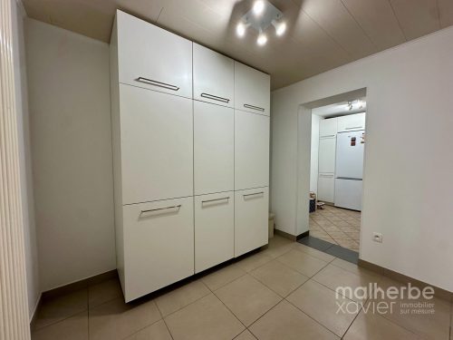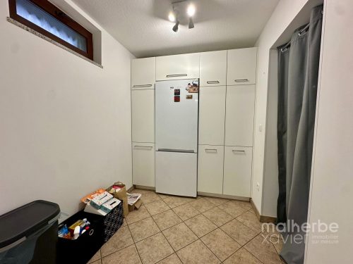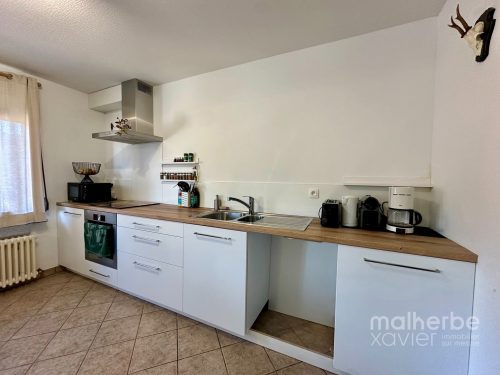 – Cuisine équipée : nombreux meubles sur mesure, taque à vitro 4 zones, four, hotte, frigo, évier (possibilité d’installer un lave-vaisselle)