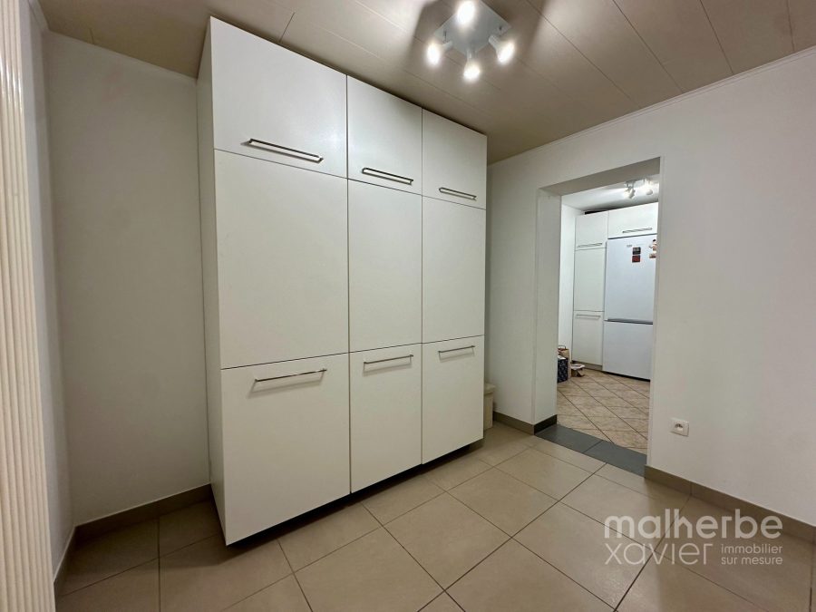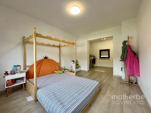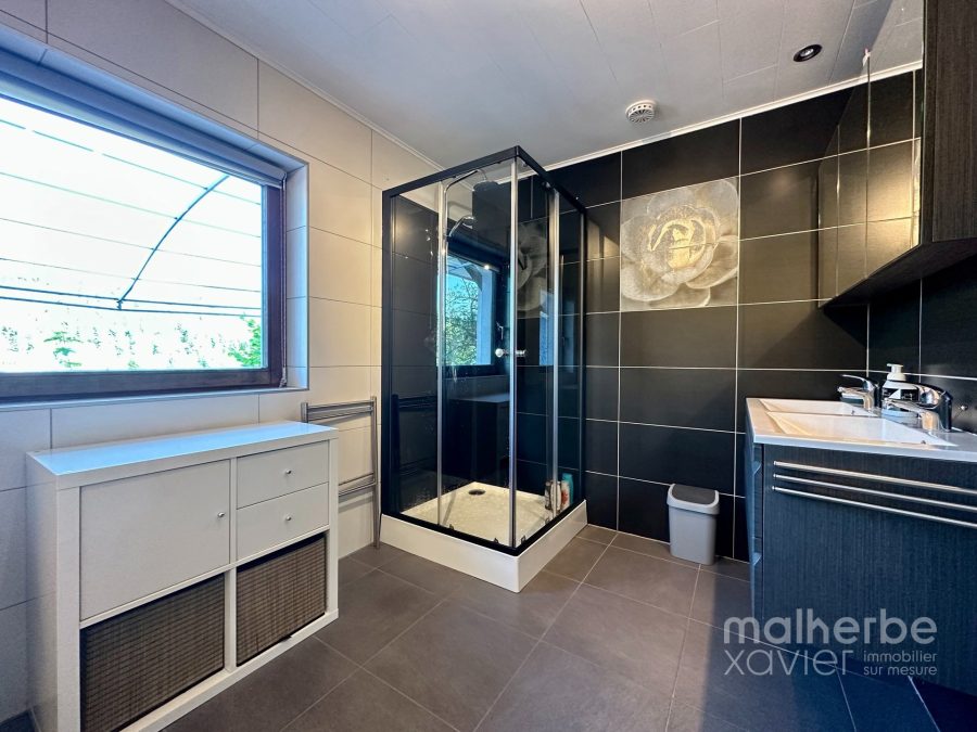 Rez-de-chaussée : vaste hall d’entrée avec wc indépendant, grand living ouvert sur la cuisine équipée, arrière cuisine, salle de bains équipée, buanderie donnant accès à la terrasse (seconde entrée)