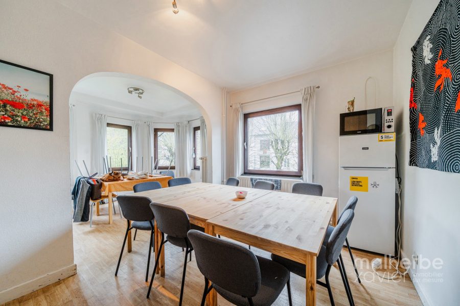 Offrant 5 chambres spacieuses et 2 salles de bains, elle se distingue par ses volumes lumineux et son atmosphère accueillante. Actuellement utilisée comme bureaux pour une ASBL, elle conviendra tout autant à une famille nombreuse, une habitation kangourou, une colocation, un bifamilial, ou encore à une activité professionnelle/libérale grâce à ses nombreux espaces modulables.