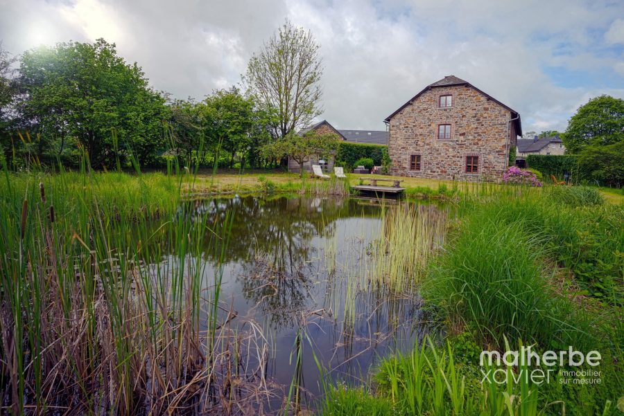 – Superbe jardin paysager avec terrasse, carport, abri de jardin & un magnifique étang privé, vue dégagée sur la nature, environnement paisible sans vis-à-vis