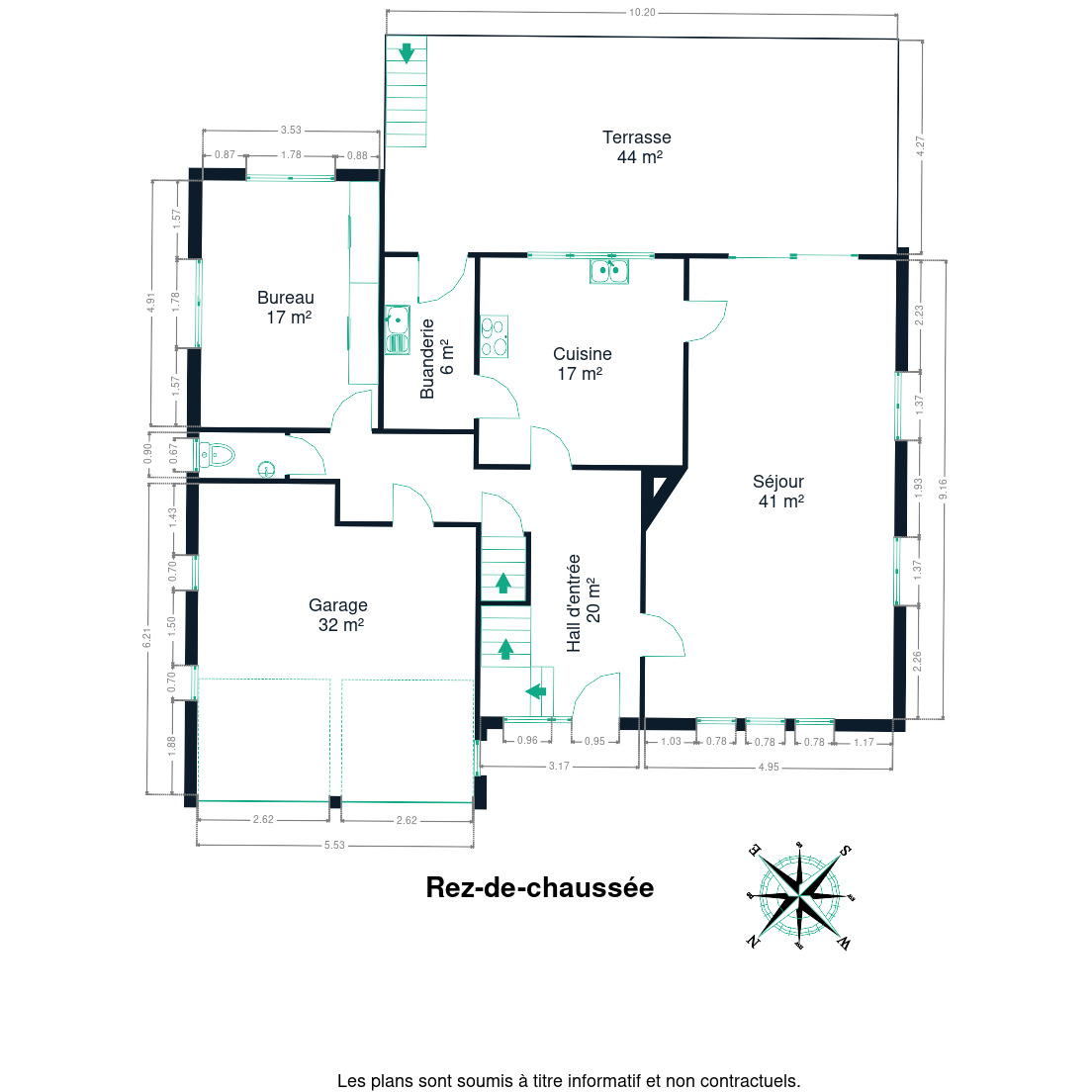 Un bureau, une buanderie, un WC séparé, et un grand garage avec porte sectionnelle électrique + borne de recharge.