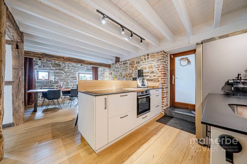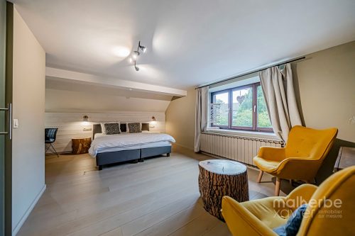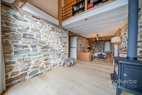 Située au cœur du charmant village de Robertville, cette fermette authentique entièrement rénovée (394 m²) allie confort moderne, cachet d’époque et un cadre de vie exceptionnel. Implantée sur une vaste parcelle de près de 7.800 m², elle se compose de deux unités distinctes :