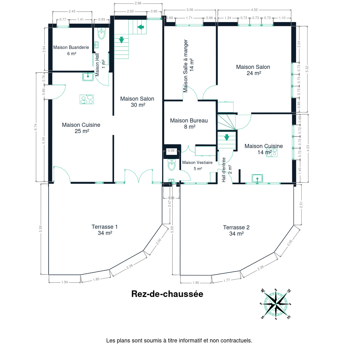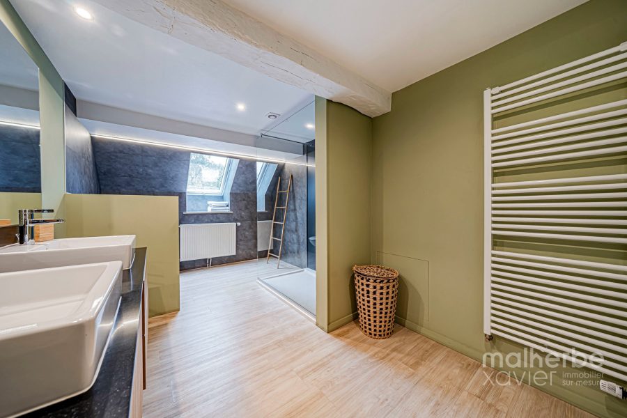 Spacieuse et lumineuse, elle offre un vaste séjour avec poêle à bois, une cuisine équipée haut de gamme avec îlot central, 3 chambres, un bureau, 2 salles de bains/douches, buanderie et grenier aménageable. -