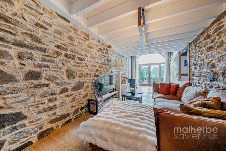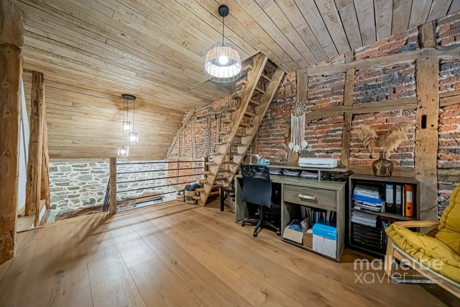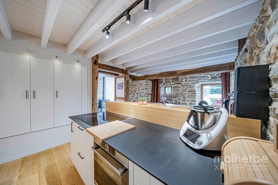 Située au cœur du charmant village de Robertville, cette fermette authentique entièrement rénovée (394 m²) allie confort moderne, cachet d’époque et un cadre de vie exceptionnel. Implantée sur une vaste parcelle de près de 7.800 m², elle se compose de deux unités distinctes :