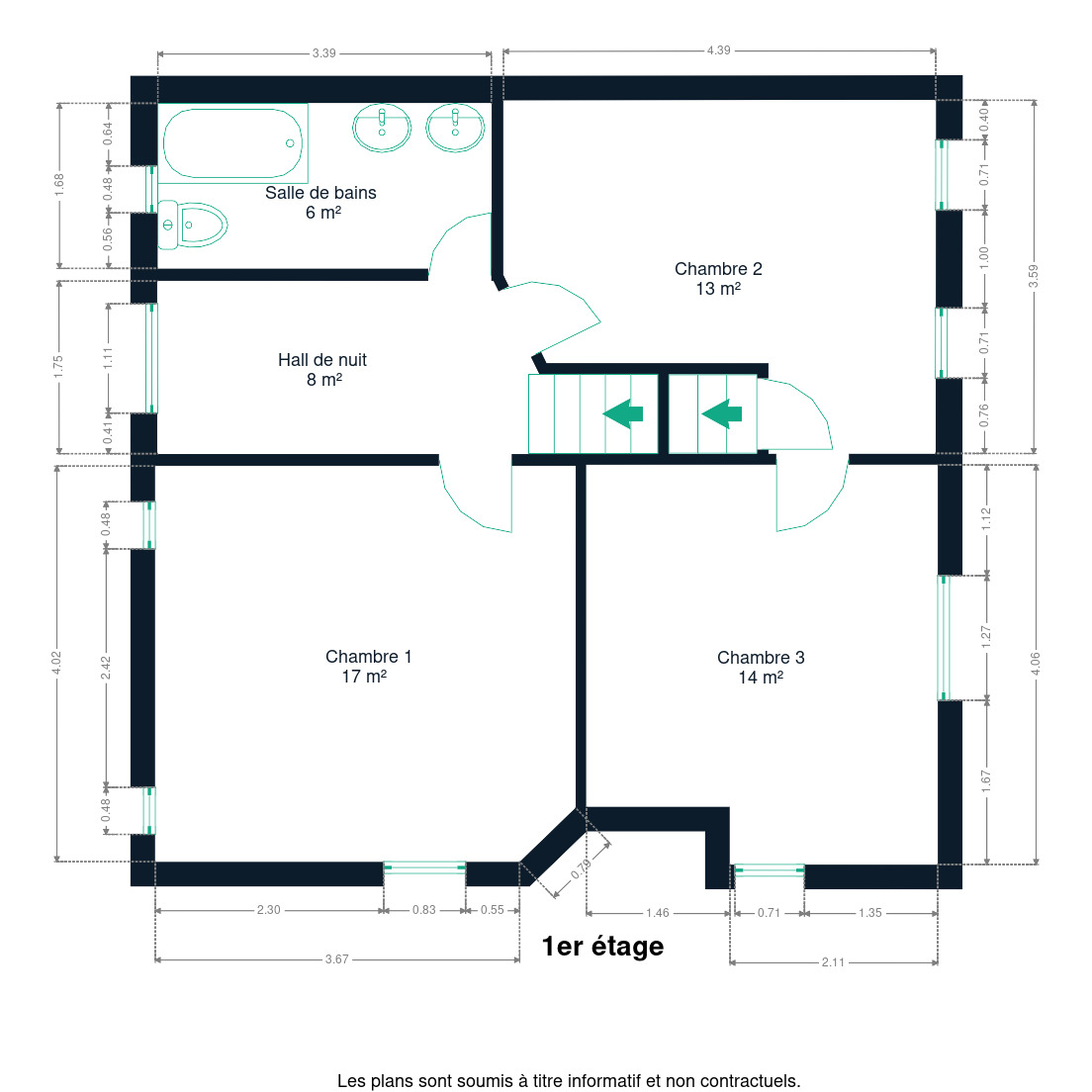 Superficie habitable actuelle : 112 m² (3 chambres + grenier aménageable).